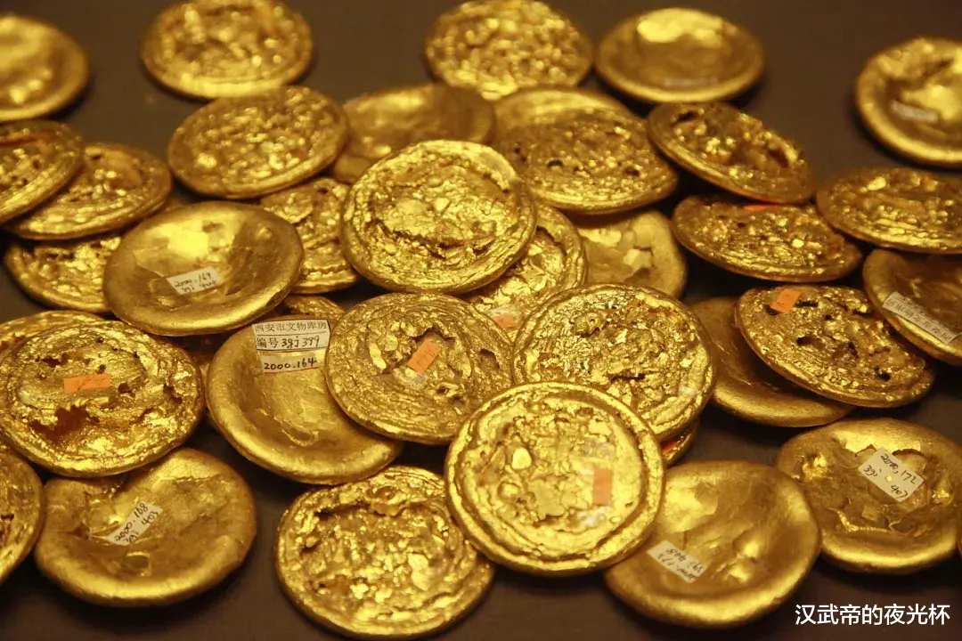 西汉是中国历史上名副其实的 “黄金时代”,黄金储备之丰富,空前绝后。《魏晋南北朝史》记载,西汉初期黄金的应用总数量在百万斤以上,折合如今 248 吨,相当于现在我国黄金储备的近四分之一。当时的黄金,被称为 “上币”,主要用于皇室赏赐、贵族馈赠、大宗交易和军事支出,汉武帝赏赐卫青二十余万斤黄金,梁孝王死后府库中尚存四十余万斤黄金,王莽篡汉时,国库中仅黄金就有六十匮,一匮万斤。一枚金饼约值万余枚五铢钱,是当时名副其实的 “硬通货”。