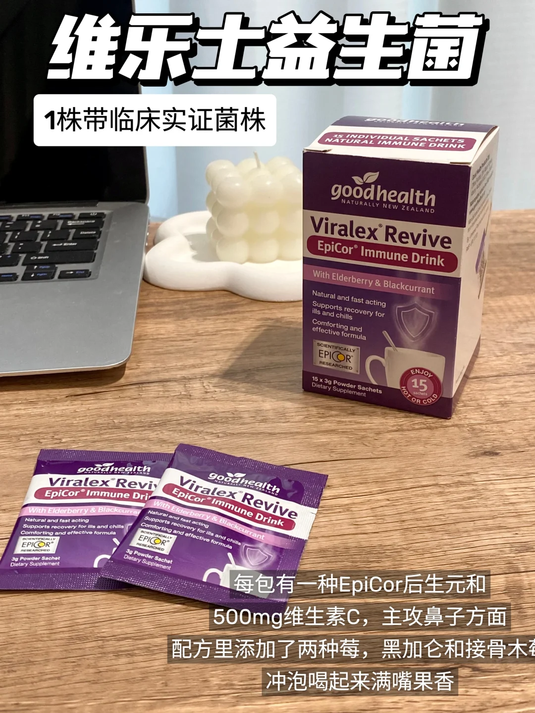 每包一种EpiCor后生元和500mg维生素C