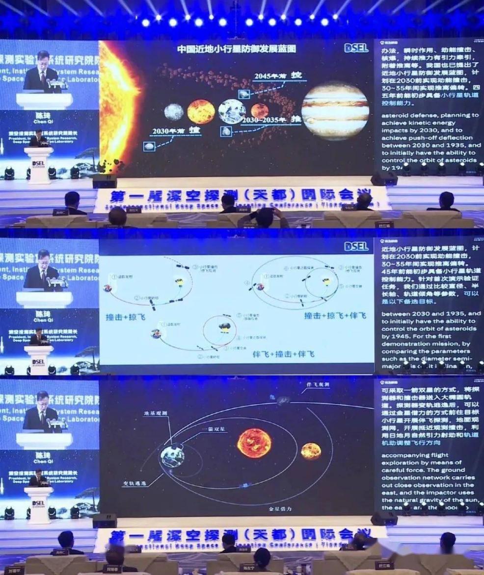 在防御手段方面,早在2022年,国家航天局相关负责人就透露,中国将着手组建近地小行星防御系统,以应对近地小行星撞击的威胁。2023年4月,中国深空探测实验室(又称天都实验室)在首届深空探测国际会议中,首次详细介绍了中国的近地小行星防御任务计划。该计划将在2030年实现对小行星的动能撞击。