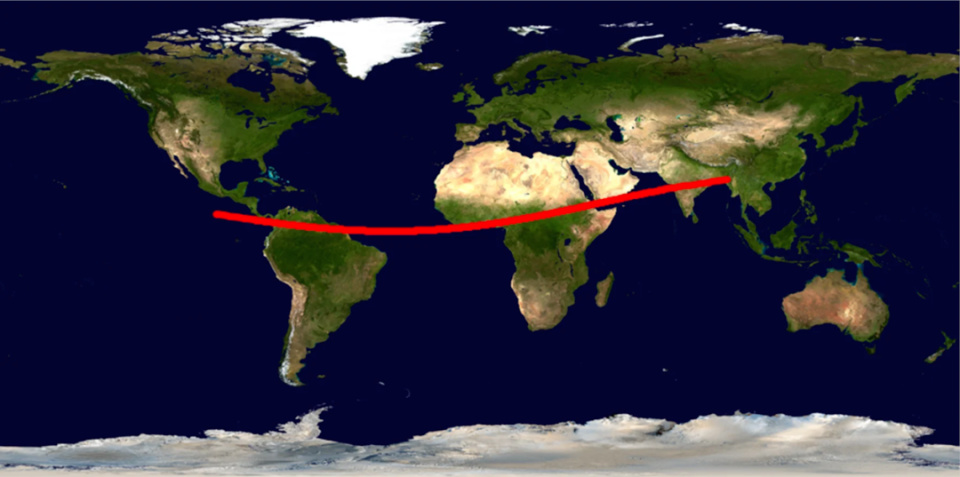 这条红线从墨西哥南部的太平洋海域开始,一路向东,穿过南美洲北部和大西洋赤道区域,然后横跨中非,再到阿拉伯半岛南部,最后经过印度中部人口密集的德里-孟买走廊,最终到达孟加拉国。需要注意的是,途径区域包括委内瑞拉首都加拉加斯、尼日利亚首都拉各斯、印度港口城市孟买等人口稠密的大城市。这也就是“2024YR4”被发现存在撞击地球可能后,科学界陡然紧张的原因。
