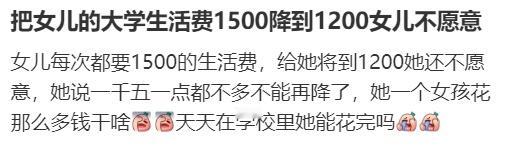 把女儿的大学生活费1500降到1200女儿不愿意