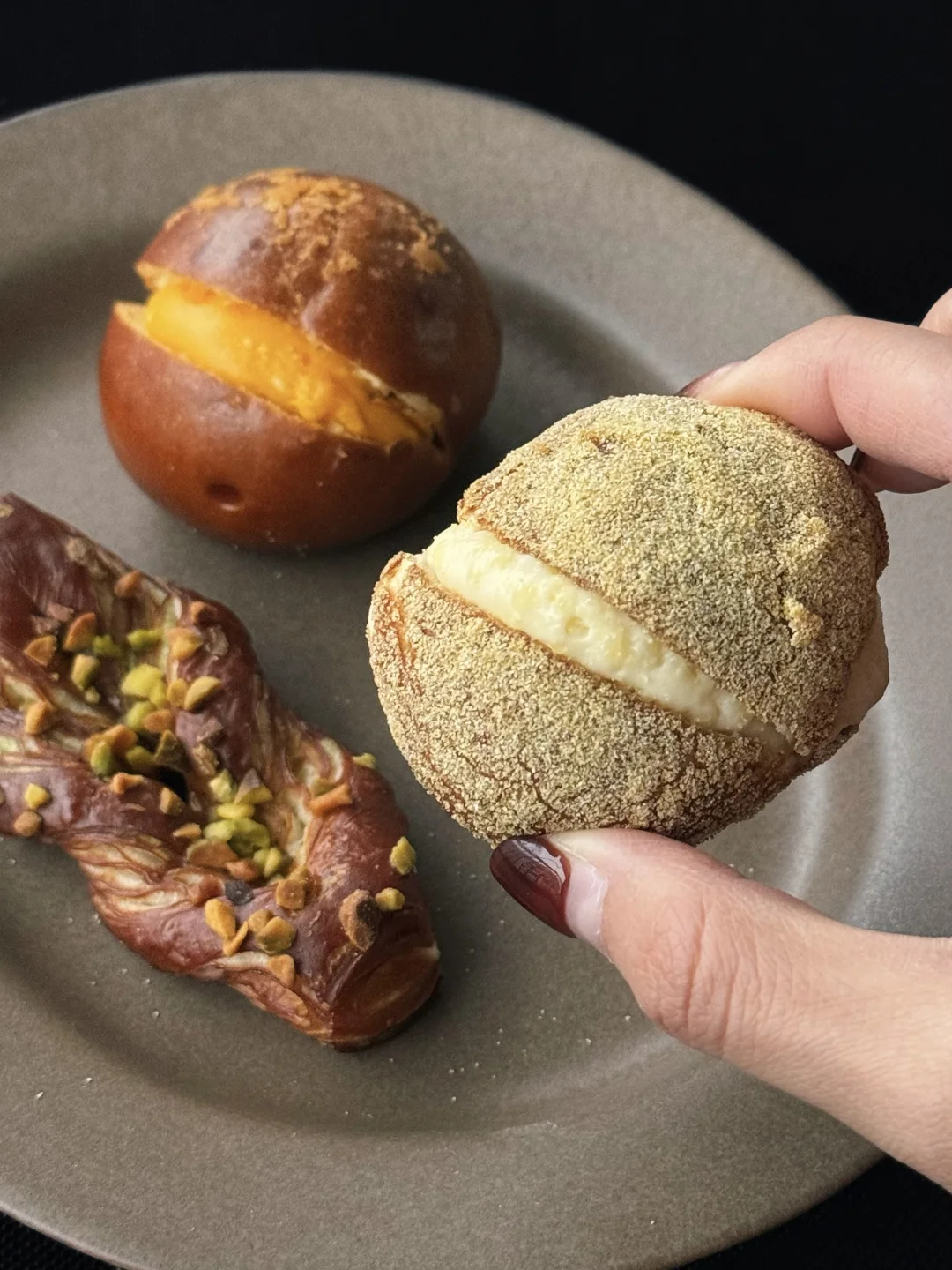 【豆沙黄豆包】一位旧人,可能是全网最后一个吃上的,甜度没我想象的高,豆香很浓,夹心层的麻薯糯糯的,出品似乎不如从前那么皮薄馅多,但还是不错的,浅尝四分之一个就刚刚好。
