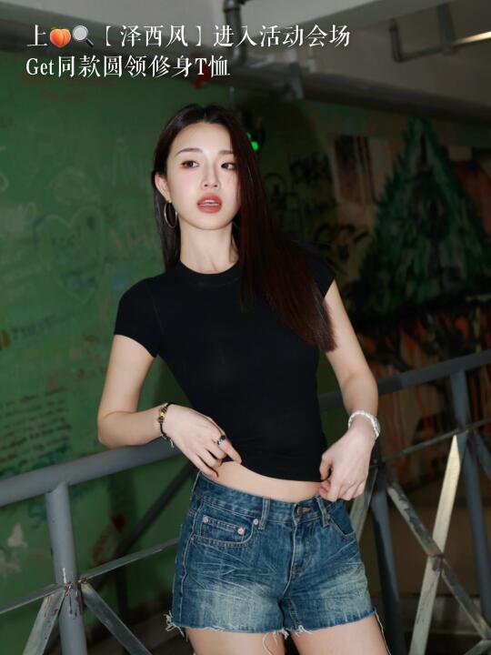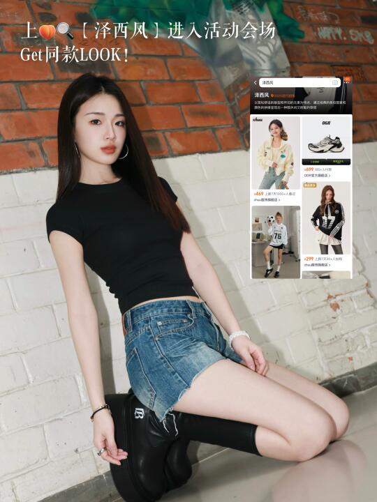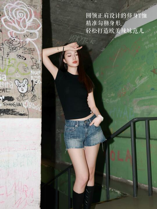 搭配的低腰牛仔短裤让整个人看起来更有街头酷感,整套look就是怀旧又时髦的氛围[得意R]