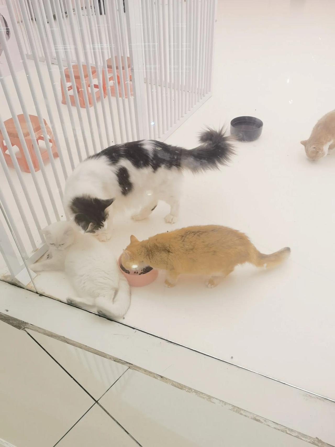 猫咪个个干净,居住环境雅静,或睡觉,或慵懒的躺着,或戏耍,或吃食,一幅岁月静好温馨祥和的景象。