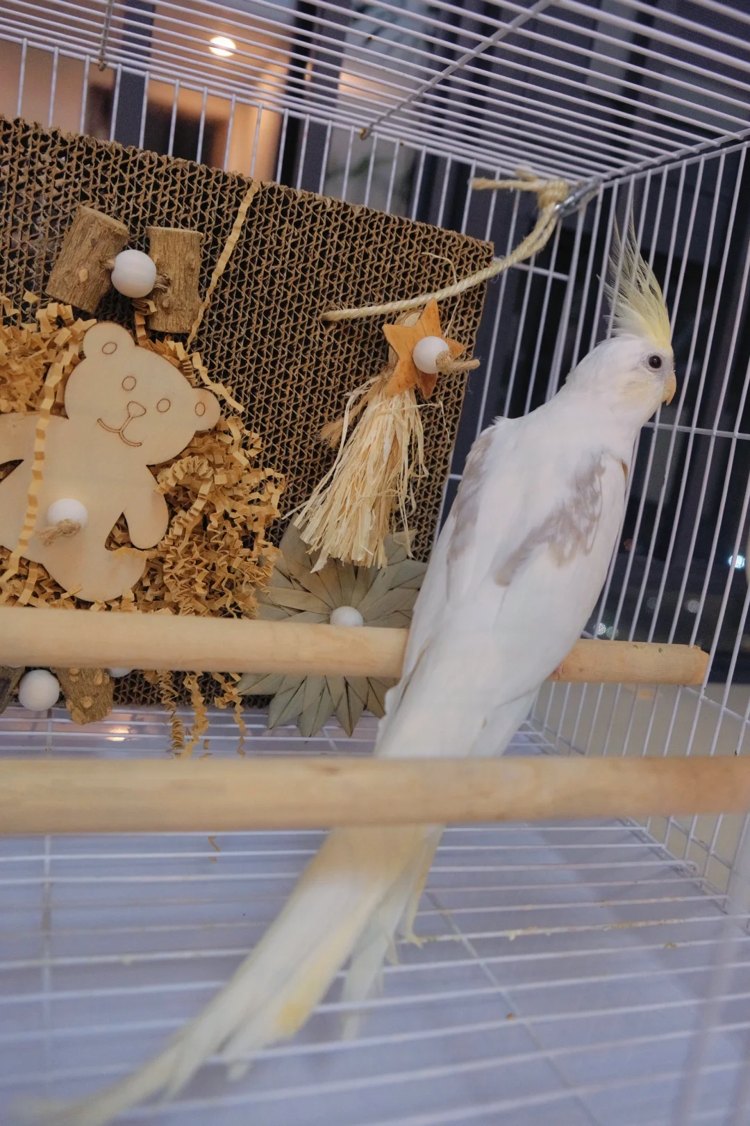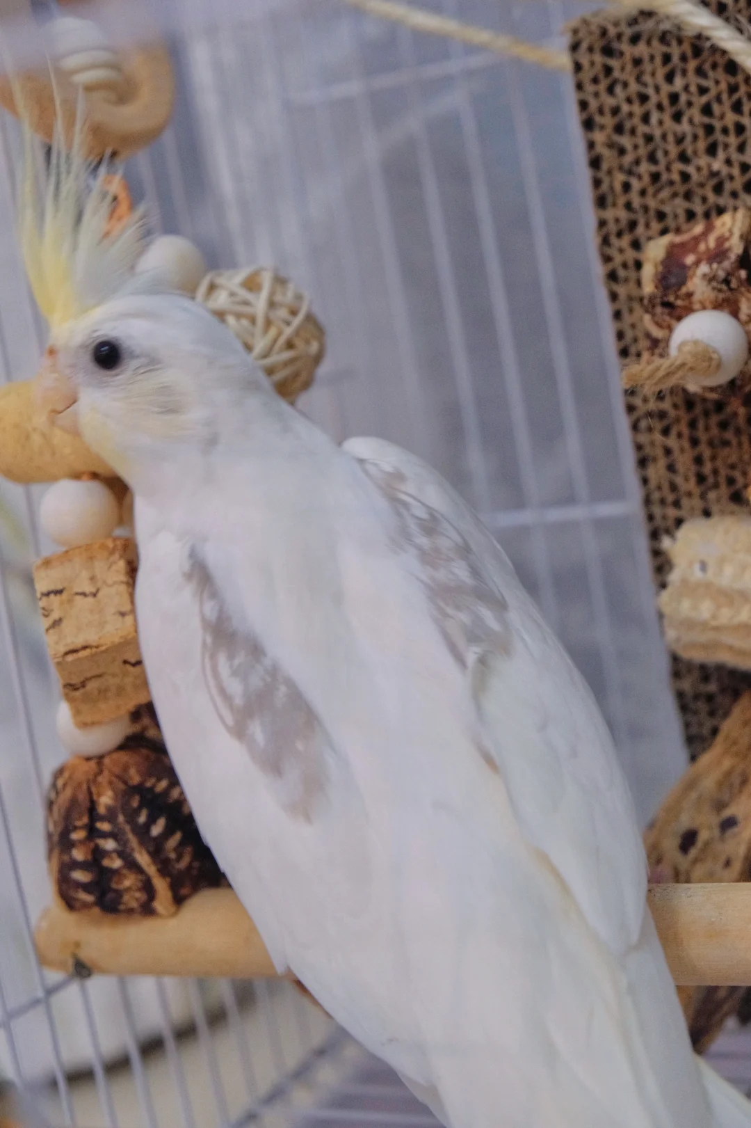 妈妈送的新小鸟~品种是金冠伪龙玄凤,家里的第三只鹦鹉,背后是完全对称的龙纹。取名“嗷丙”,是一只1岁零8个月的小公鸟。长期在养殖场被笼养,驯化还需要很多很多的耐心。 二月份的尾巴,他是双鱼座。 不管喜欢什么,都能被家人无条件支持的感觉真好啊[害羞R]