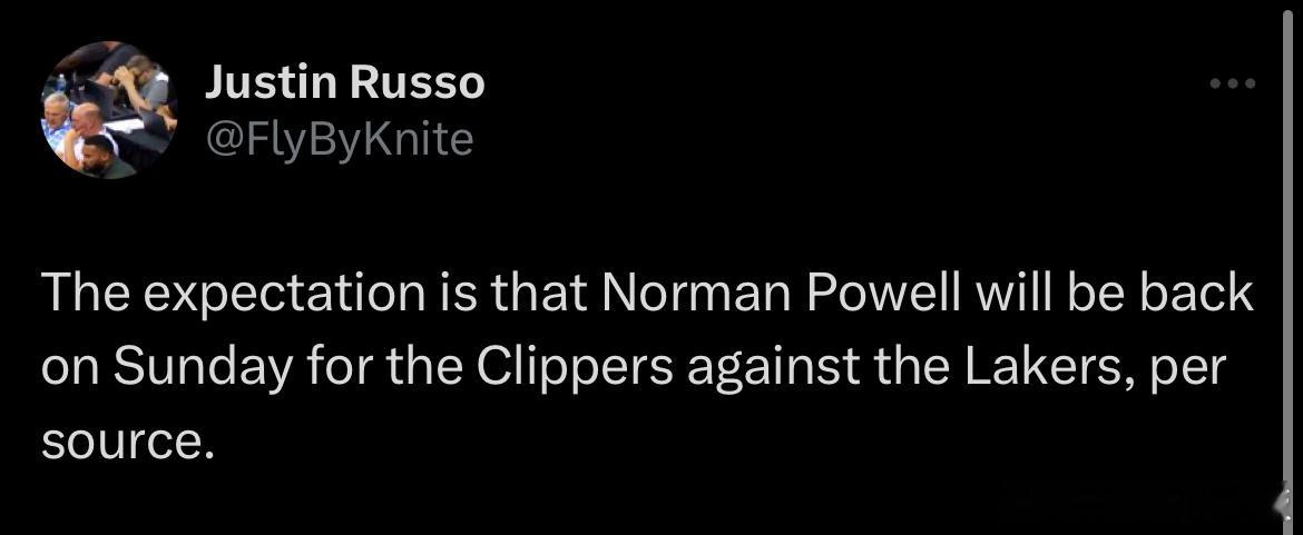 快船记者:消息人士透露,鲍威尔预计将在下周一对阵湖人复出。