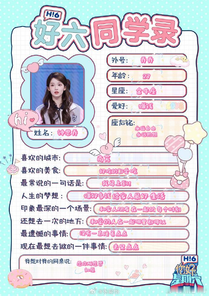 白敬亭[超话] 章若楠[超话] 你好星期六全员晒同学录 你好星期六 好六中
