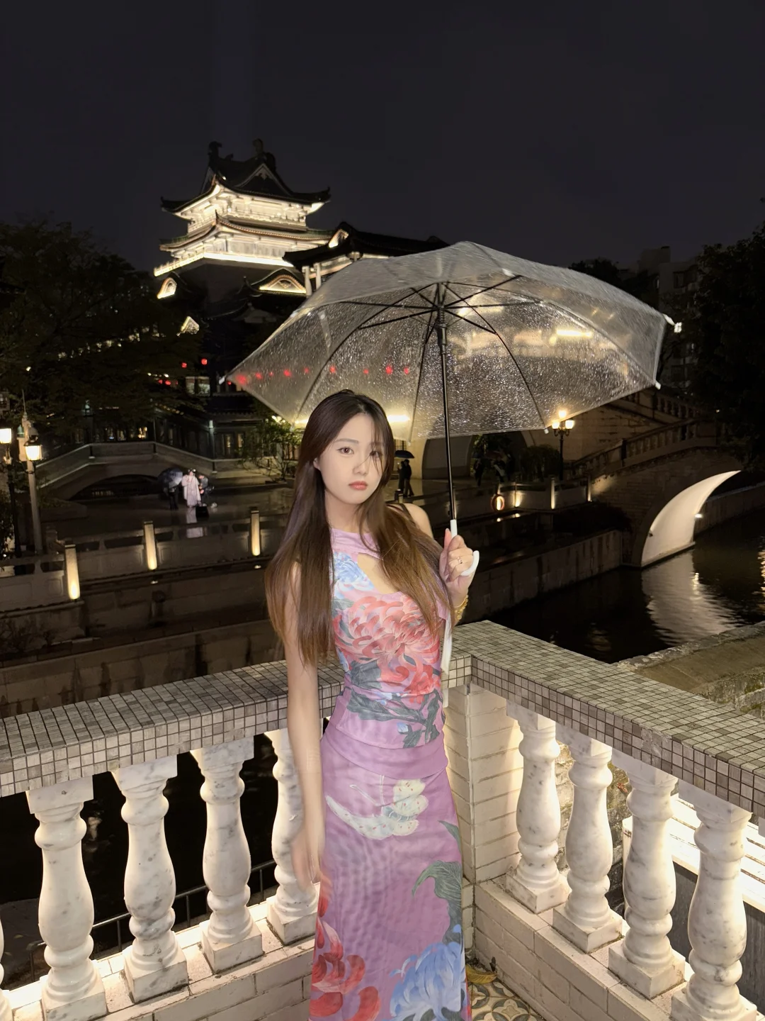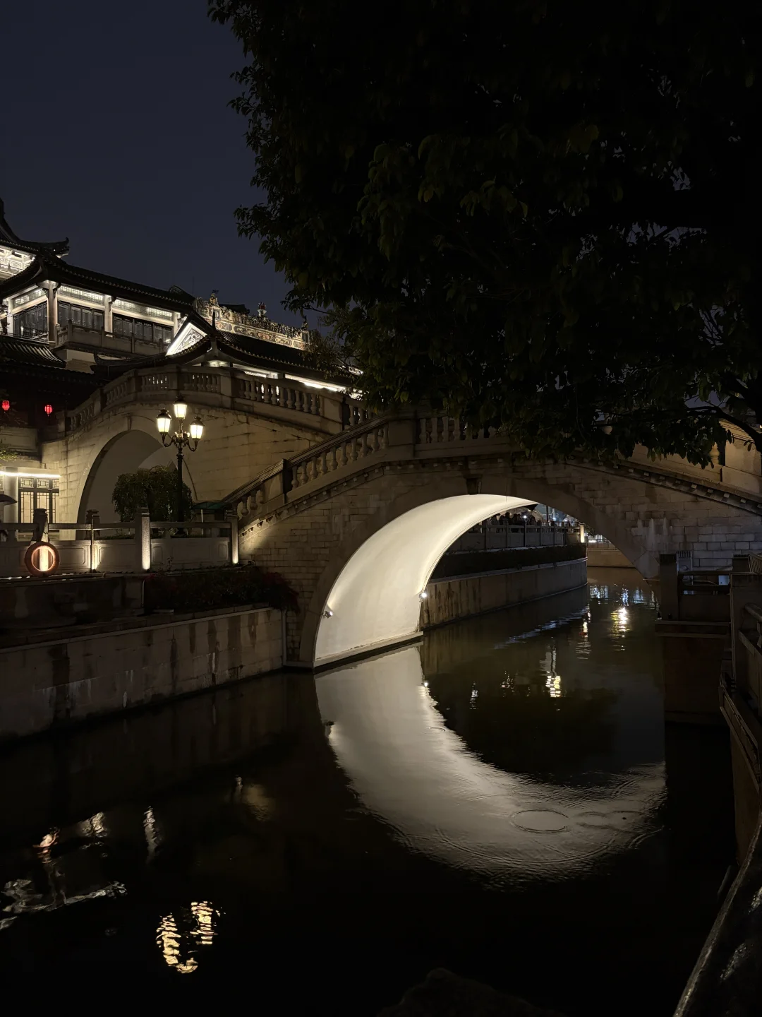 下着毛毛雨的夜晚,月亮桥显得好有韵味~