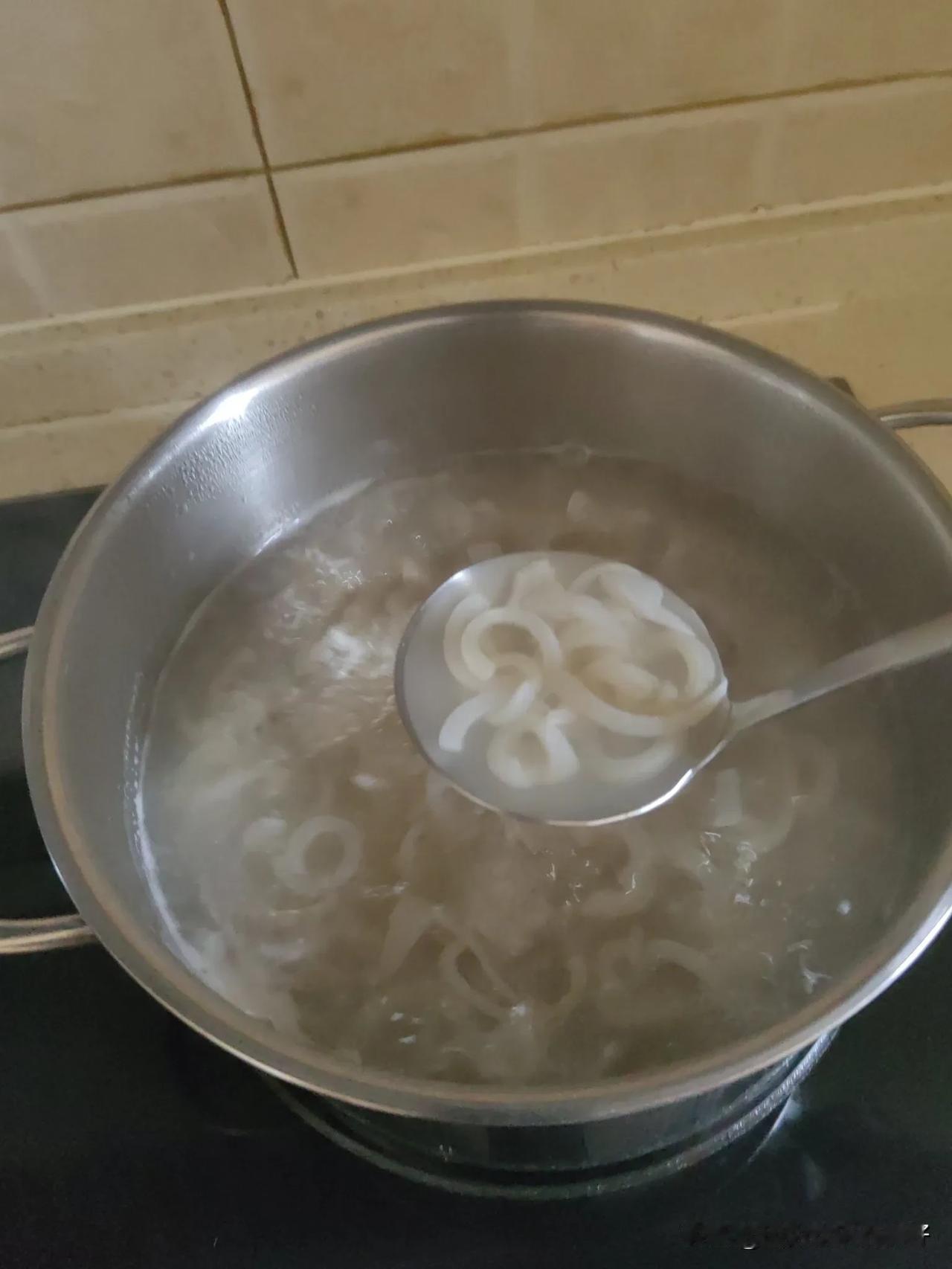 昨天我突然想起,还是大年三十我作皮肉敦剩下的清洗好的肉皮在冰箱里,我儿媳也特别喜欢吃皮肉敦,于是把它拿出来滶制皮肉敦,我滶制的皮肉敦特别好吃,皮肉敦不但好吃还美颜。外面卖的皮肉敦我从来不最买.害怕不健康,要想吃到高质量的,放心的皮肉敦,还要自己亲手制作哟。不知友友们喜欢吃吗?我把滶制皮肉敦的方法告诉大家,因为我一个人不好录像。只拍了照片。先把肉皮放到锅里水开后继续者分钟,然后把內皮捞出 凉凉,把油用刀括干净把皮也括干净,然后再放干净水中煮到肉皮用筷子可以插透,把它捞出来,洗干净,用刀把到切成小细条,油一定要括干净哟,然后在放清水锅里煮开几分钟捞出换清水再煮一遍水开几分煮捞出。换干净水,这次根据肉皮的量添水,可以多添点水把煮,把调料包和肉皮一起放进锅里,用中火烧开煮上二十分钟,转小火慢慢傲制止到内皮一捞快要断的那种感觉就可以关火了在关火之前一定要把准备好的小葱放进去再加点味精,把料包捞出.把肉汤倒进盆中凉却,就可以享用了,如果你不想吃肉皮可以用露勺把肉皮捞出,美味的皮肉敦就做好了。不知朋友们可喜欢,调料包可以根据自己的口味放 ,