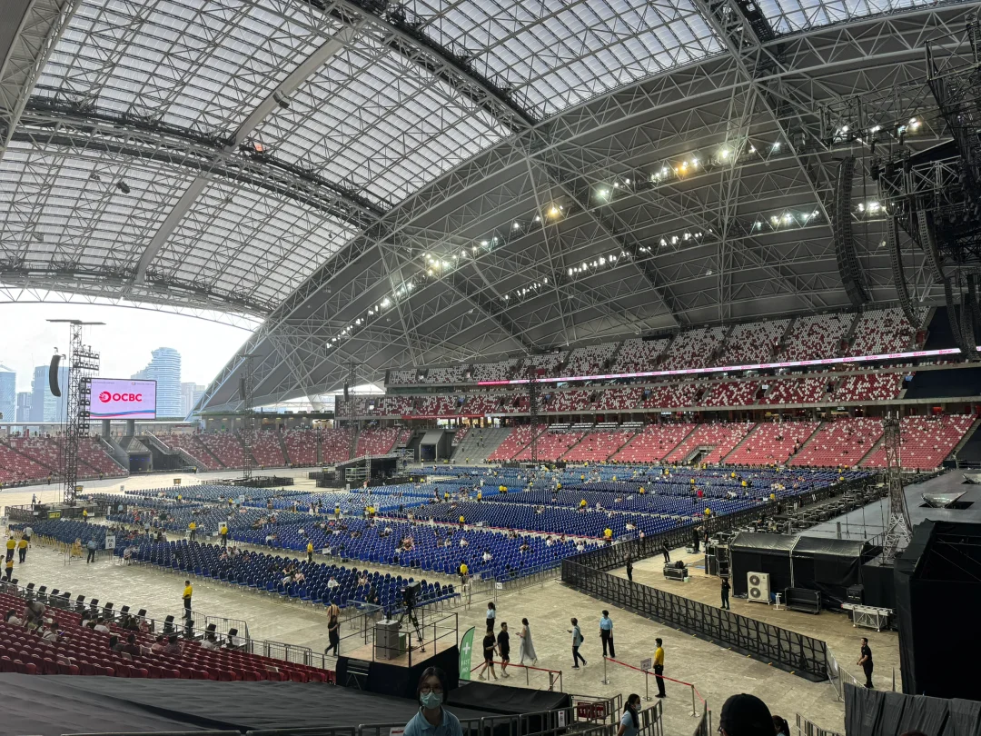 音响上去了哇,看之前的图以为和马来西亚的舞台一样有点遮挡呢