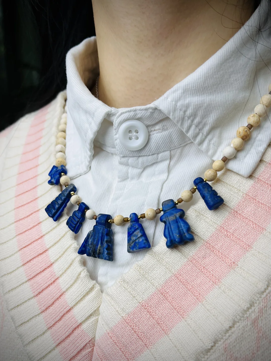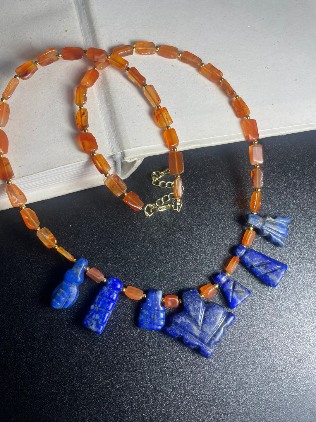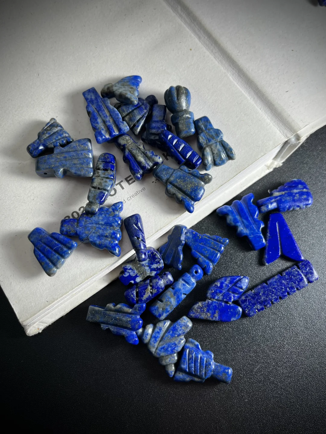 少堂主古珠玉 青金石 珠串搭配 古珠 文玩小元素 文玩配珠 白色的珠子是健陀罗文化的隐舍利,材质是一种软玉,已经从里到外完全钙化了 红色的是清末的老玛瑙 化腐朽为神奇 一些老珠子,和仿古的青金石神符搭配 致敬古埃及和两河流域文明