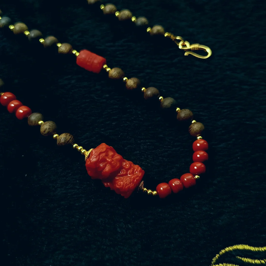真要又遇到什么急事儿的时候,求神拜佛谁最管用? 肯定是度母娘娘,她救急难解八困,尤其对妇女和儿童特别友好 这款是奇楠沉香搭配的南红玛瑙,尤其是那个宝宝度母雕刻的十分可爱可亲