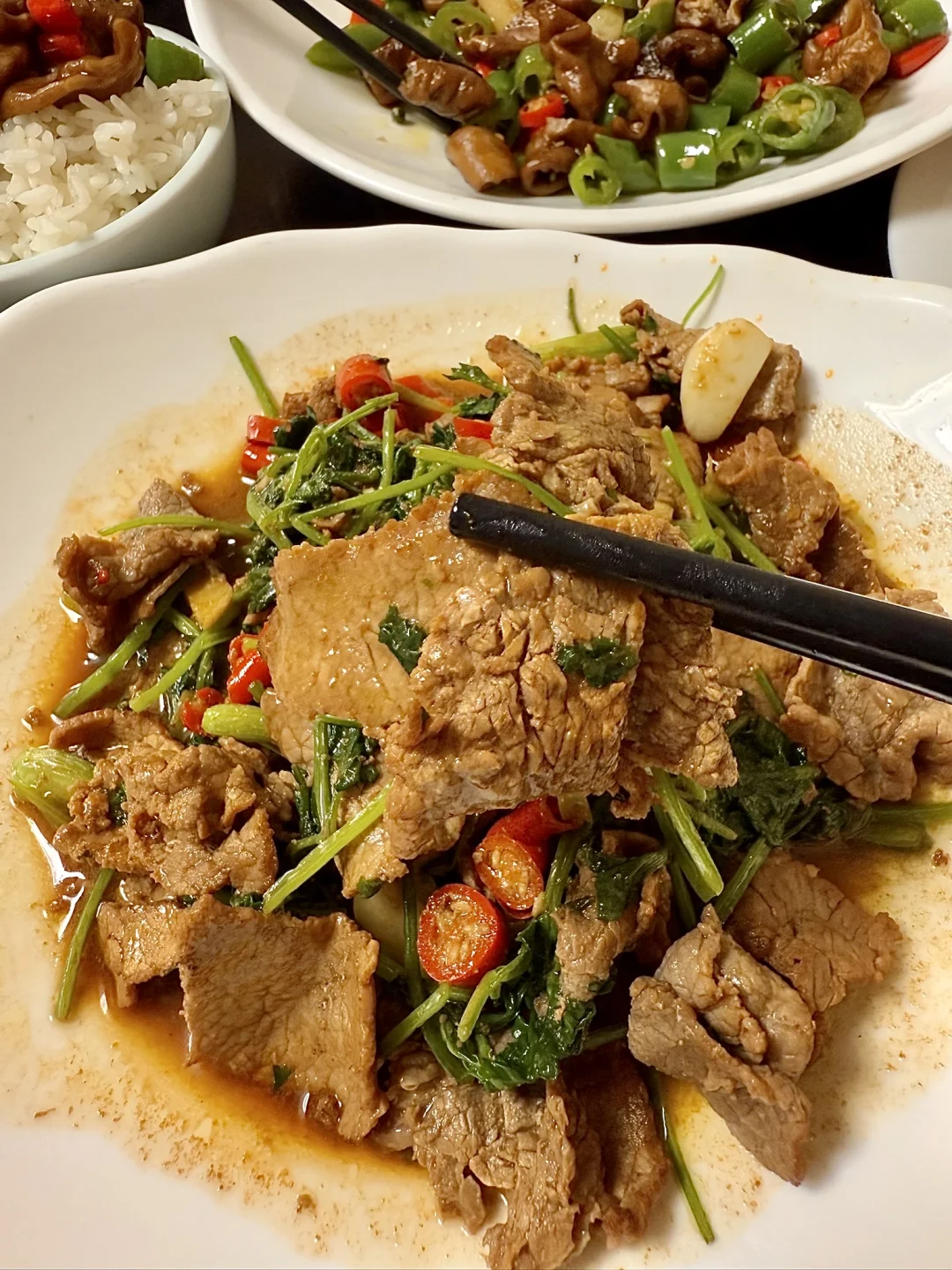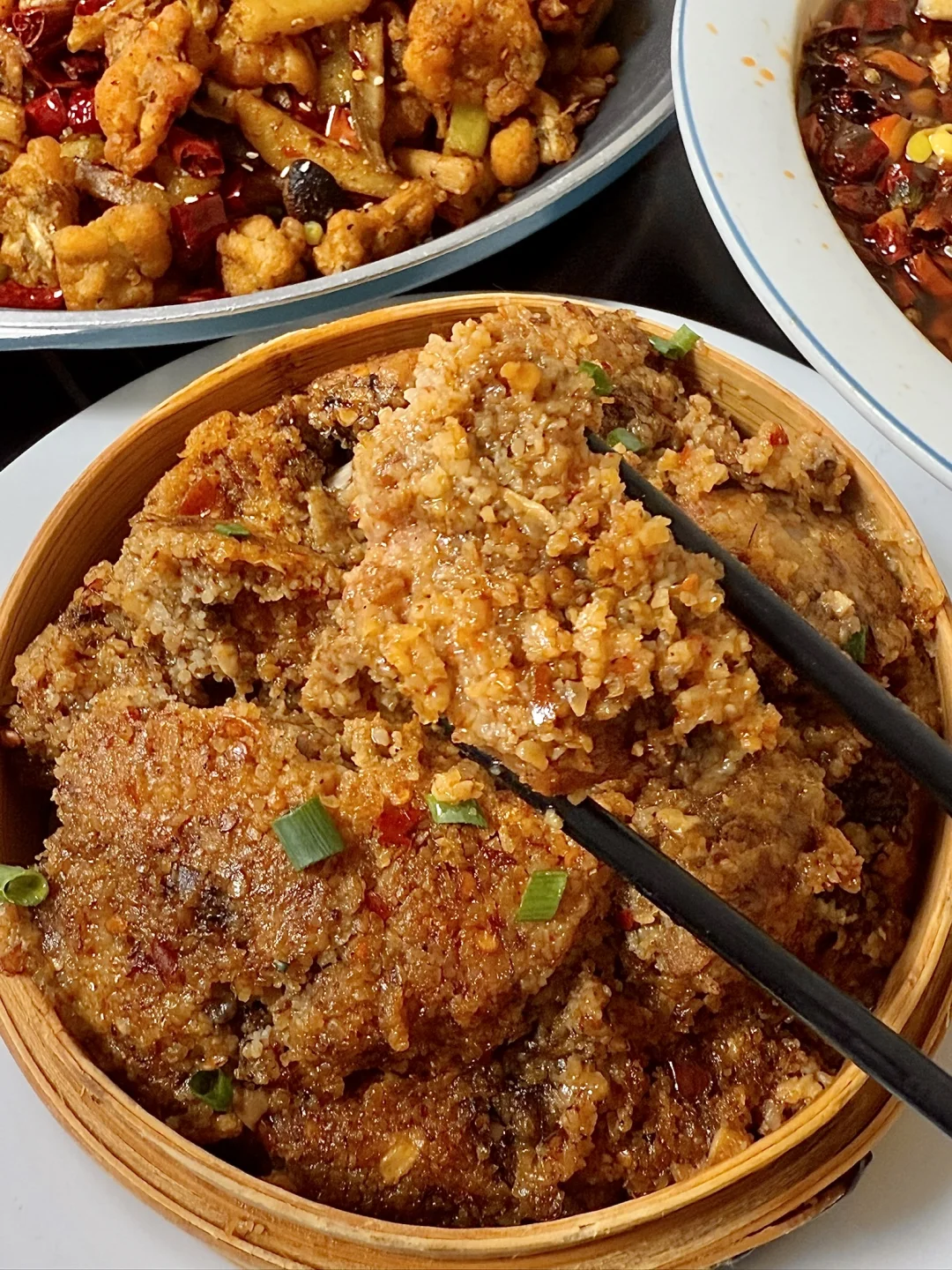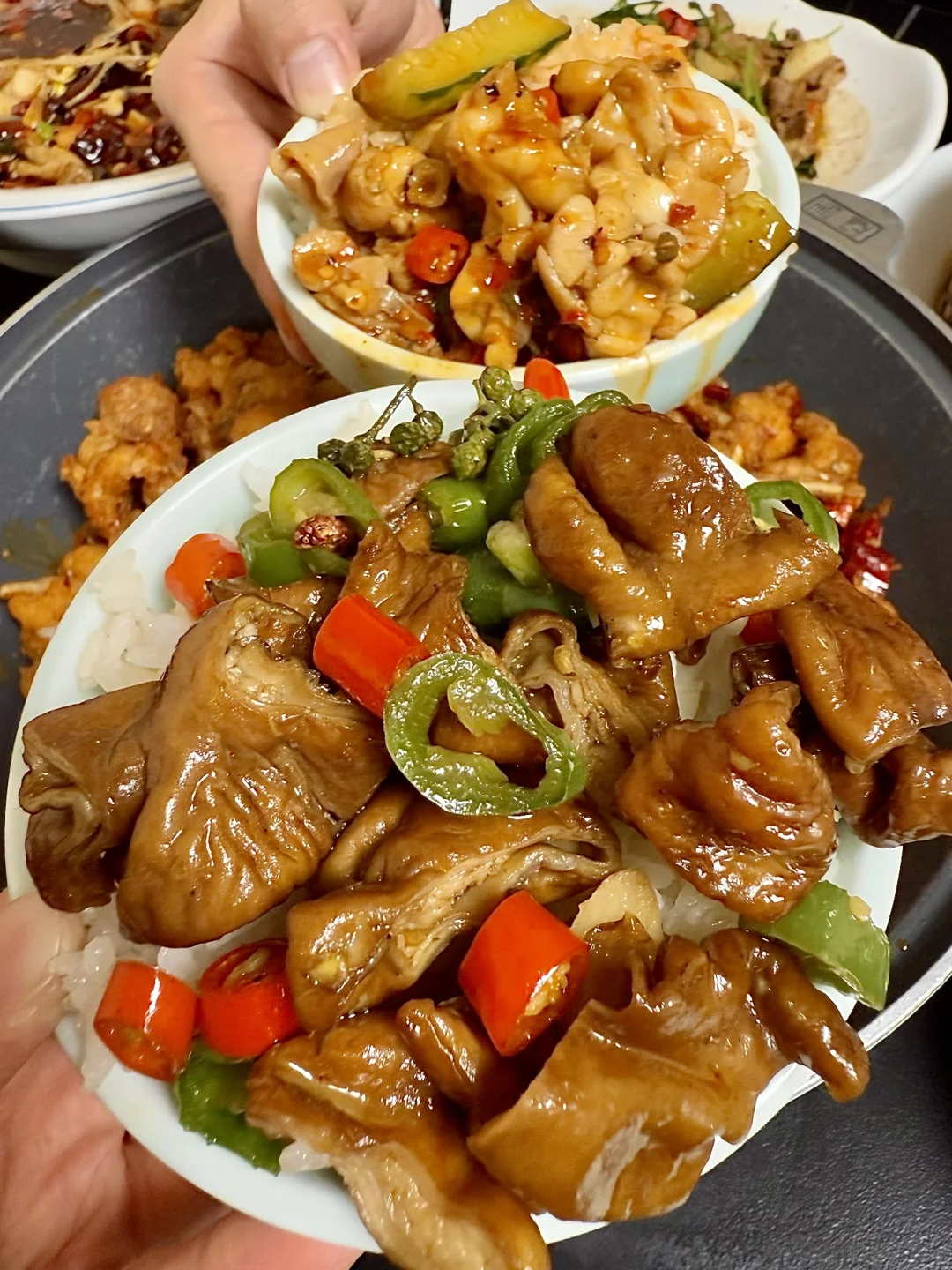 上桌的时候还在沸腾🔥蛙蛙真的太美味了!! 蛙肉入口鲜嫩,然后汤汁拌饭巨巨下饭连干好几碗! 还有粉蒸排骨、金牌牛蛙锅🏅肥肠鱼🐟小炒黄牛肉🥩都很下饭!是我和朋友愿意去无数次的小破店!