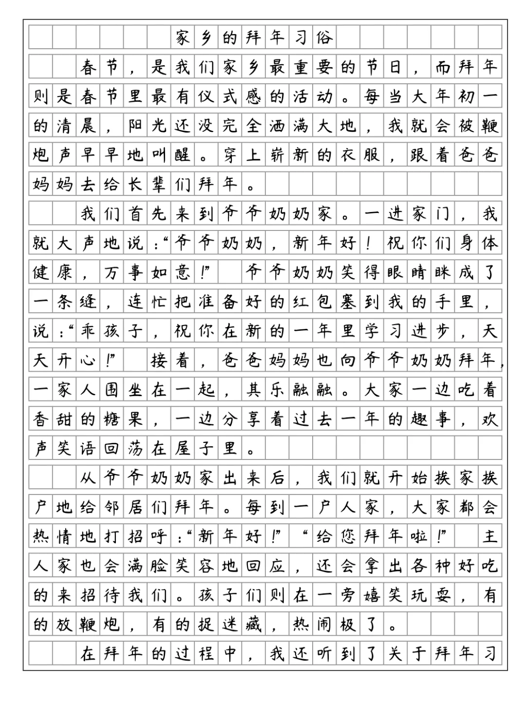 六下第一单元作文《家乡的拜年习俗》
