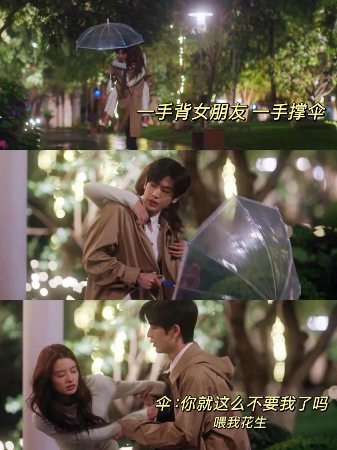 何苏叶送沈惜凡回家,一手撑伞拎包一手背着沈惜凡