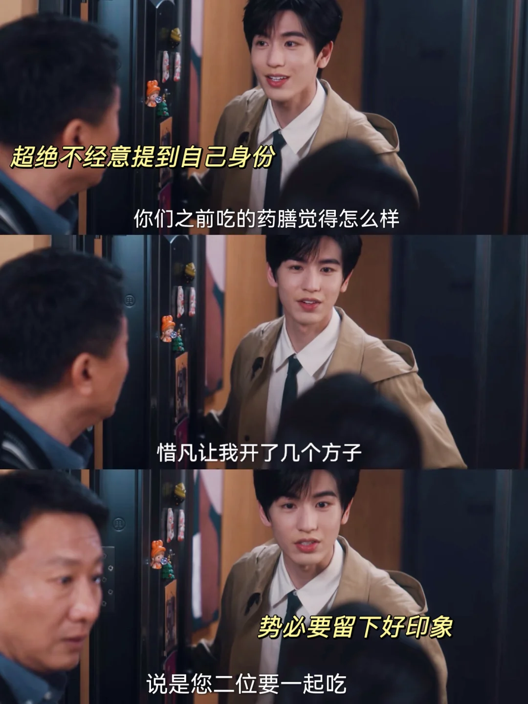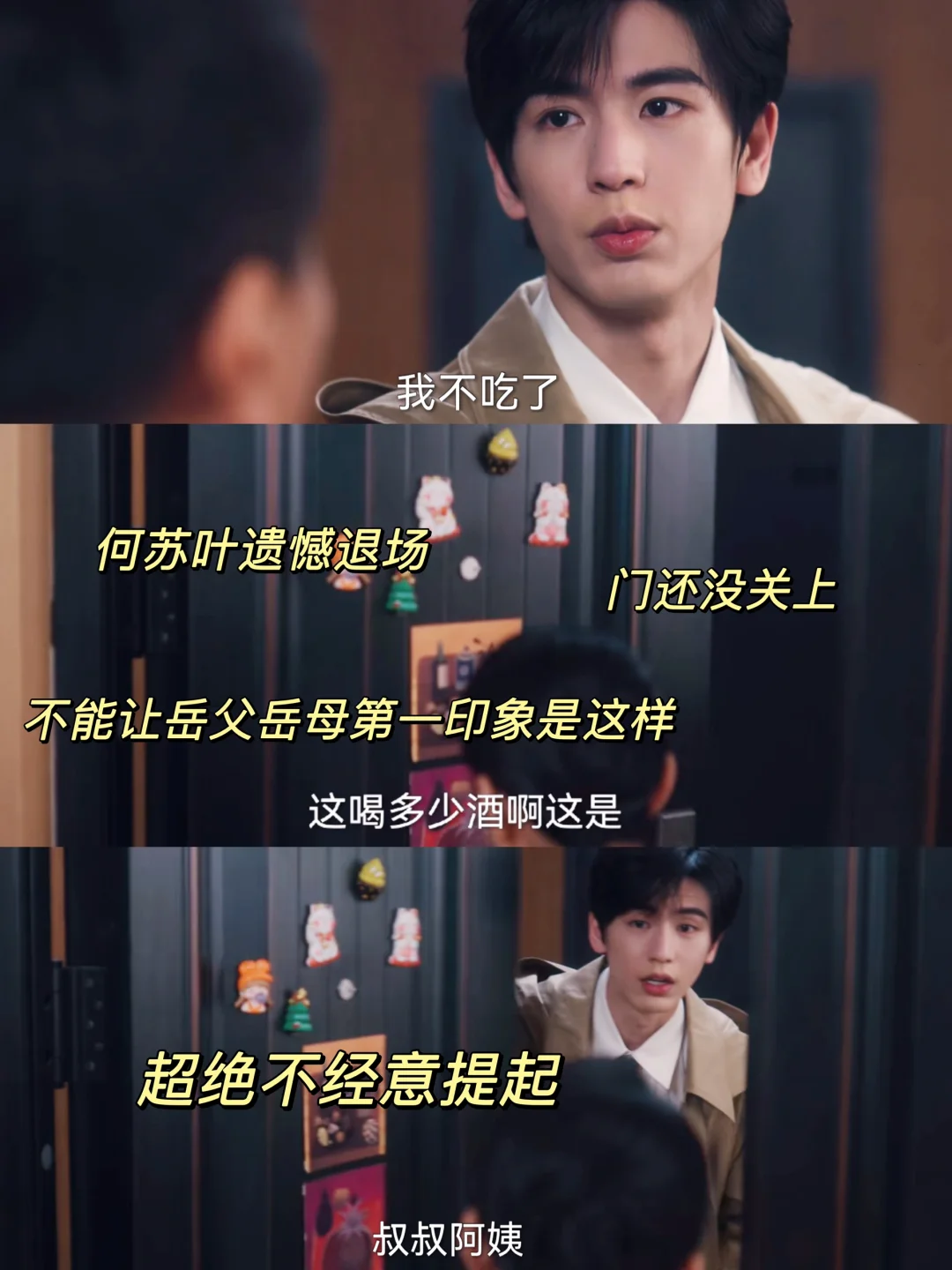 何苏叶本来要遗憾退场的,但自己不能第一次就给未来岳父母留下这个印象!!!马上要关门的瞬间又把门拉开,超绝不经意间提到药膳,让对方意识到自己的身份😎
