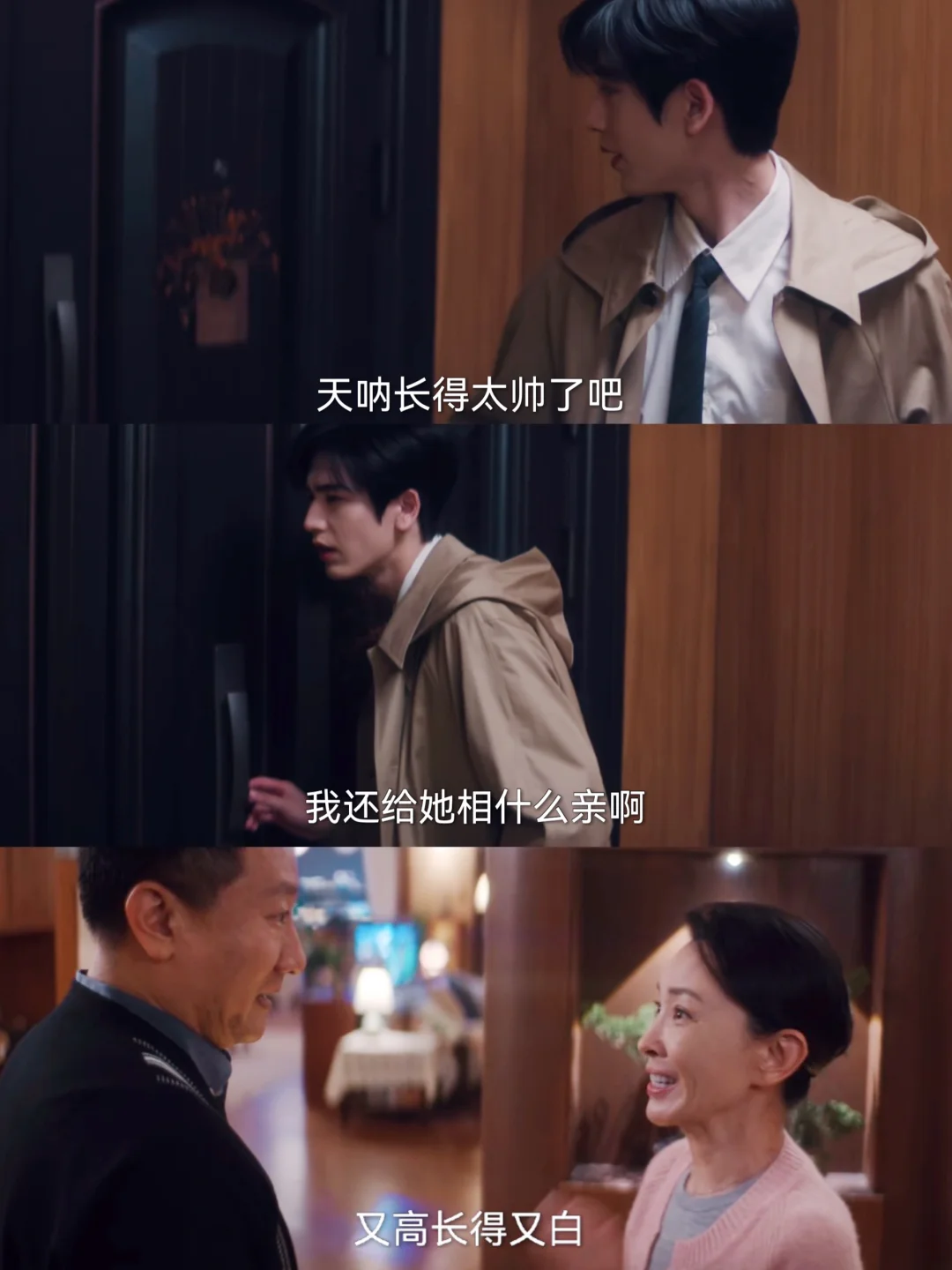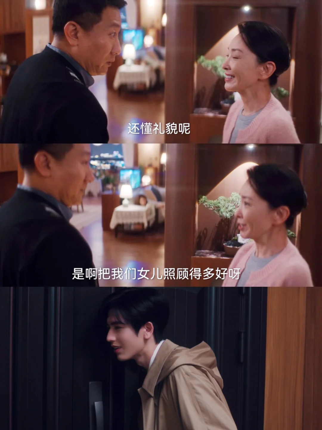 沈爸沈妈热情邀约小何下次到家里来做客,小何目的达成成功离场。关上门的瞬间还听到沈爸沈妈在夸自己,腹黑小何暗爽😏自己可不是那个“西瓜头小流氓”😙(不愧是尖尖角,有点招全用来攻略沈惜凡和岳父母了)