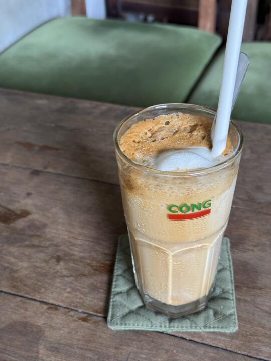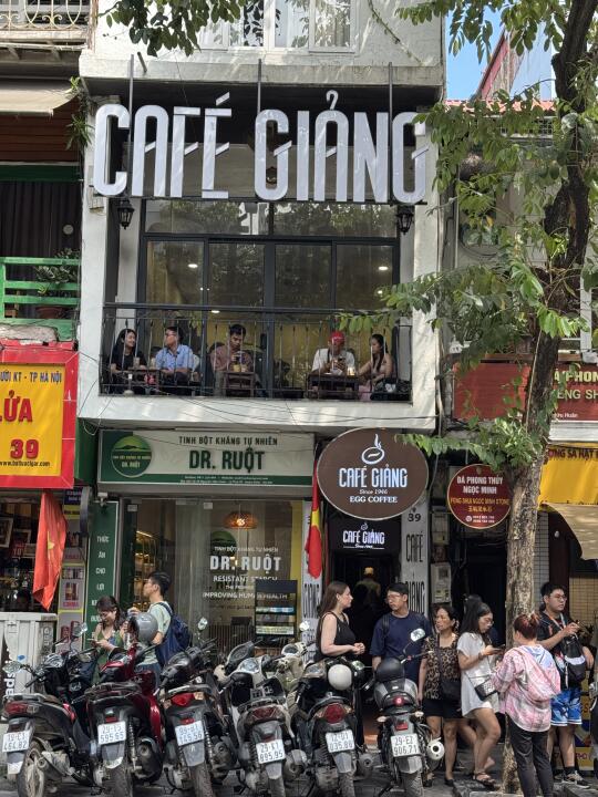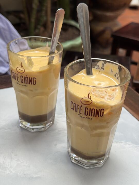 来越南必喝的了鸡蛋咖啡,这家普遍好评,所以人也比较多。不过座位也蛮多的。招牌鸡蛋咖啡,一定要点冰的,没什么腥味,口感挺特别的上面的鸡蛋很绵密,但是感觉几口就没了哈哈