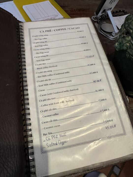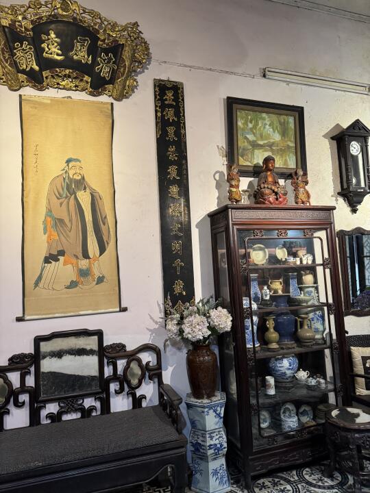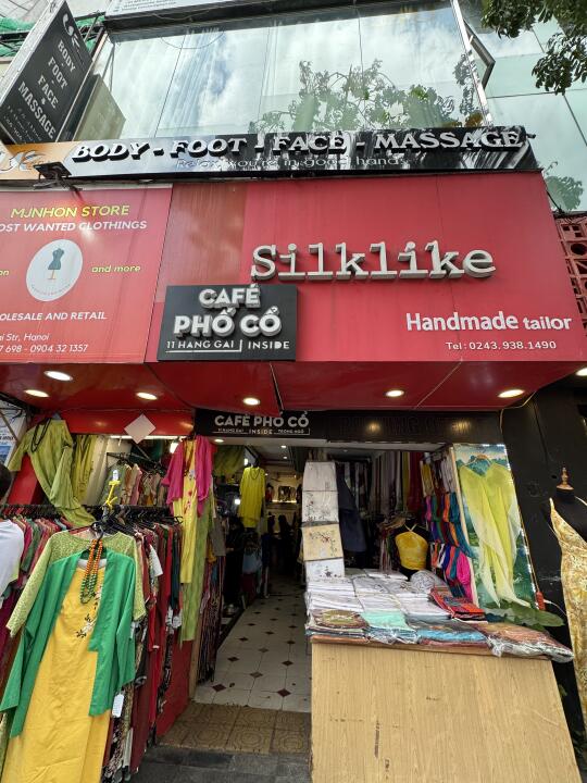 为了盐咖啡去的,但被店里的装修惊艳了。完全中国特色,里面超级多中国的物件,还有越南人在拍结婚照,很有趣。不太好找,门脸是服装店…得往里面走,进去是这个很特别的咖啡店,好几层,别有洞天的感觉。