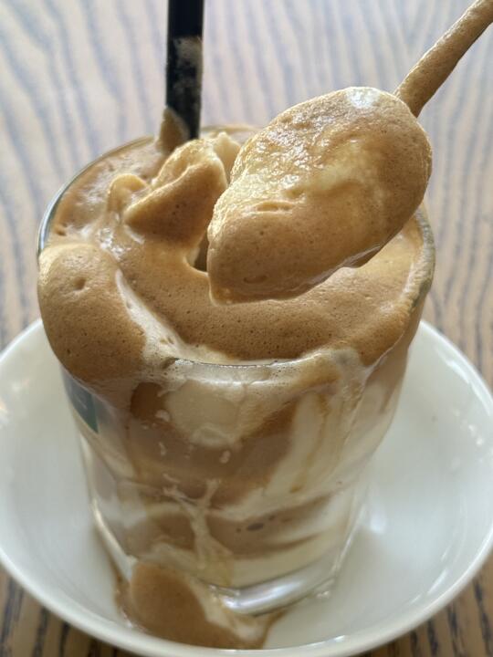 最爱这杯!巨好喝!!绿豆口味清凉解暑,上面是咖啡混合绿豆味冰沙,真的好喜欢~这家店是连锁店,很多家,就近找就好。点这杯的话是那个black coffee with mung bean。