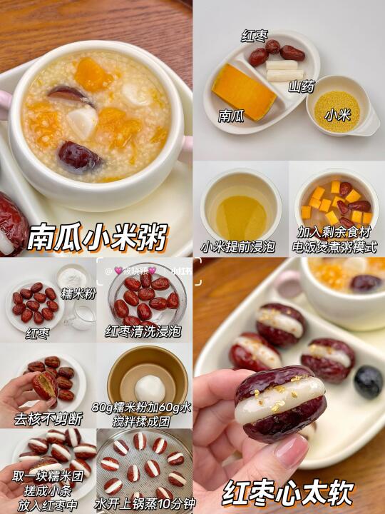 ✅南瓜小米粥+红枣心太软+黑芝麻丸