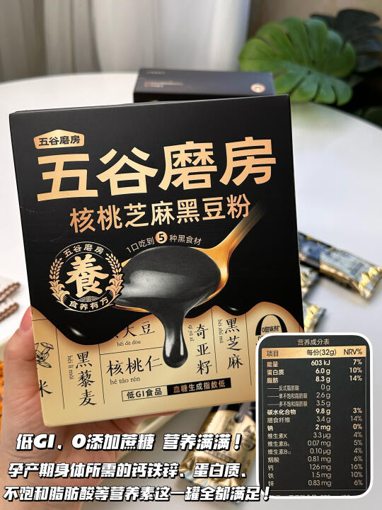 ✨推荐试试五谷磨房的核桃芝麻黑豆粉,我自己从孕期就开始吃,后面又推荐给了闺蜜,因为孕产期身体所需的钙、铁、蛋白质、膳食纤维、大豆异黄酮等营养素这一罐全都满足!多吃黑色食物也能让宝宝身体更强壮💪🏻