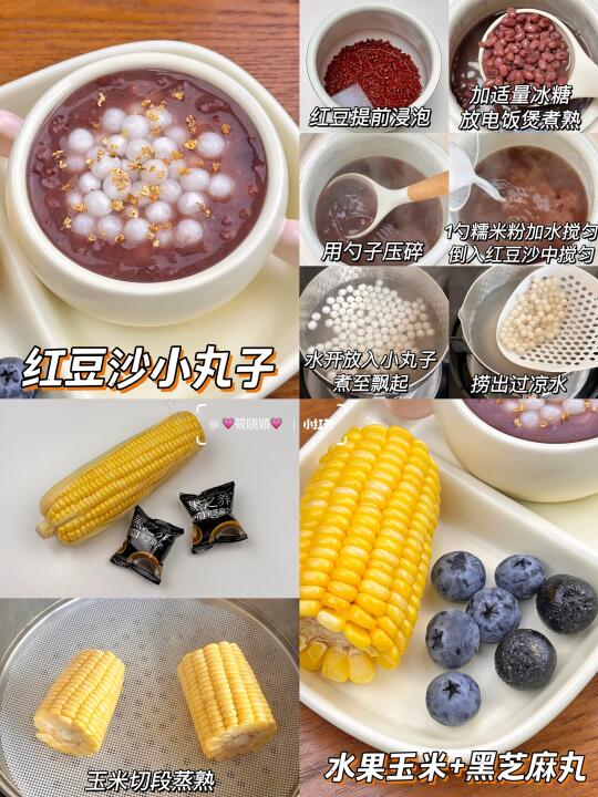 ✅红豆沙小丸子+水果玉米+黑芝麻丸