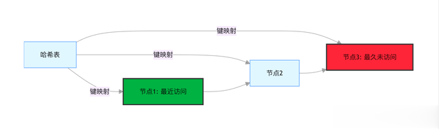 双向链表维护访问顺序,头部为最近访问节点,尾部为最久未访问节点。哈希表存储键到链表节点的映射,保证O(1)时间复杂度的插入、查询和删除。2. 缓存更新策略:一致性与性能的博弈