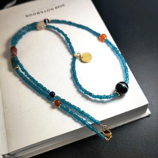 汉代合浦郡(今广西合浦县)是海上丝绸之路的始发港之一,连接中原与东南亚、南亚甚至地中海地区,是中外贸易和文化交流的关键枢纽。通过合浦港,中国的丝绸、陶瓷等商品出口,同时进口珍宝(如琉璃、琥珀、水晶) 合浦汉墓群(如文昌塔墓群)中多次发现琉璃珠,常与琥珀、水晶、金饰等共出,多见于贵族墓葬。 - 珠子的尺寸较小(直径约0.5-2厘米),中孔穿绳,可能用于项链、手串或装饰衣物。