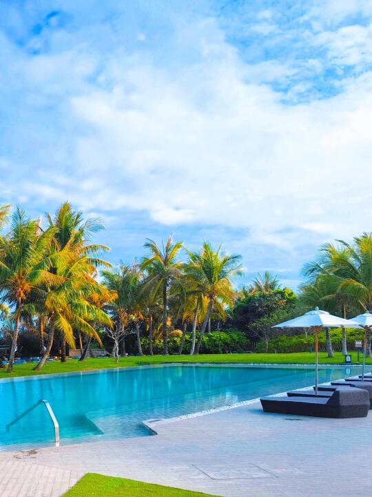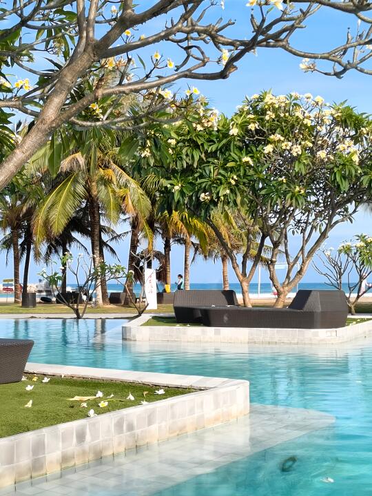 这个酒店真的是我会无限回住的酒店。首先对于冲浪爱好者,酒店自身就是不错的浪点,下楼就可以冲浪简直不要太方便。对于度假,酒店有两个泳池和一个带大滑梯的水上乐园,园林也很漂亮,随处可见的鸡蛋花真的很香。另外对于亲子带娃也十分友好,入住的时候酒店会在前台加一个活动群,在群内可以预约全天各种各样的活动,有冲浪(趴板),抓螃蟹,篝火晚会,桨板,最重要的是都是免费的!!!