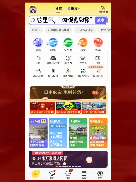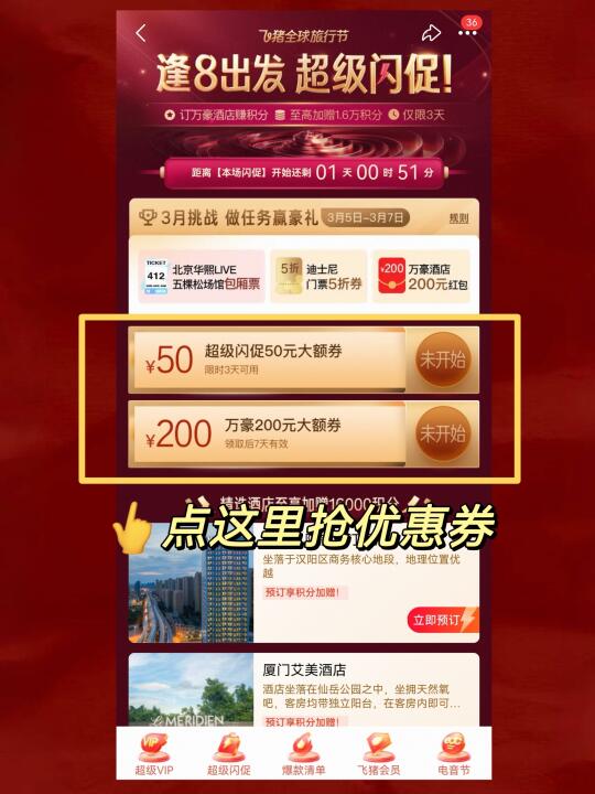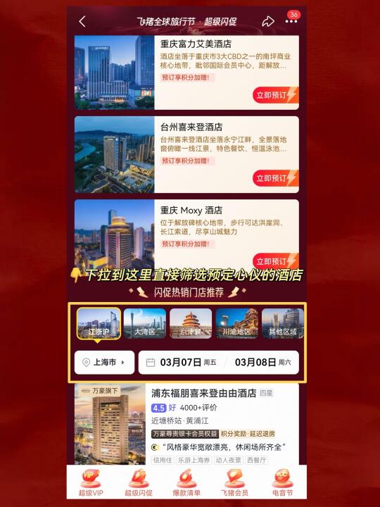 参与方式👉打开飞猪旅行🔍【闪促真划算】❗️现在还有会员挑战赛,有机会赢取演唱会门票等豪礼👏记得先报名再预订酒店