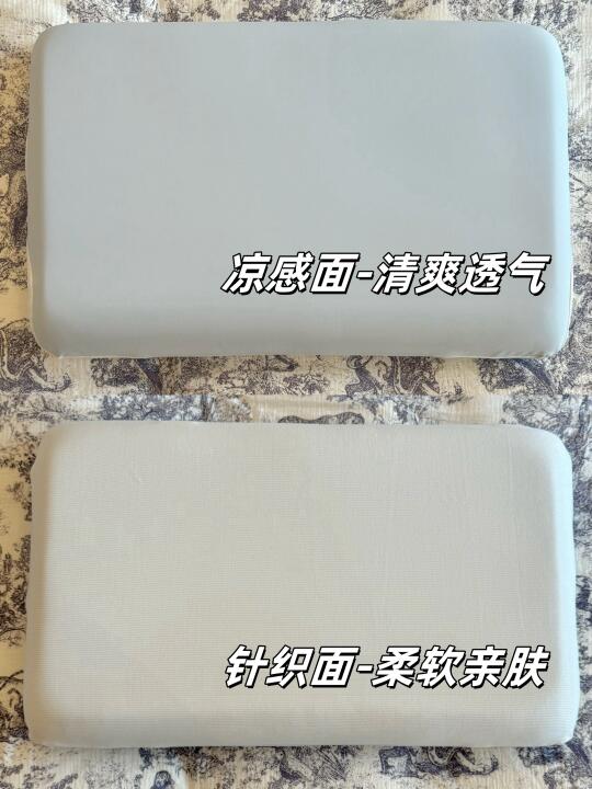 而且它的枕套是双面不同材质的,凉感面是瑜伽服同款面料,清爽透气不闷汗,很适合汗多星人;针织面丝滑柔软,不会摩擦皮肤,炒鸡舒服~