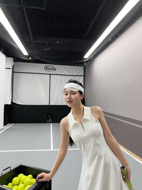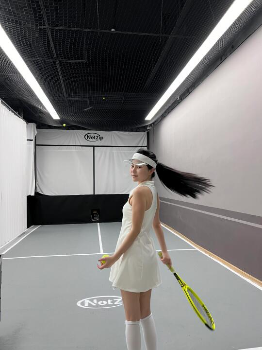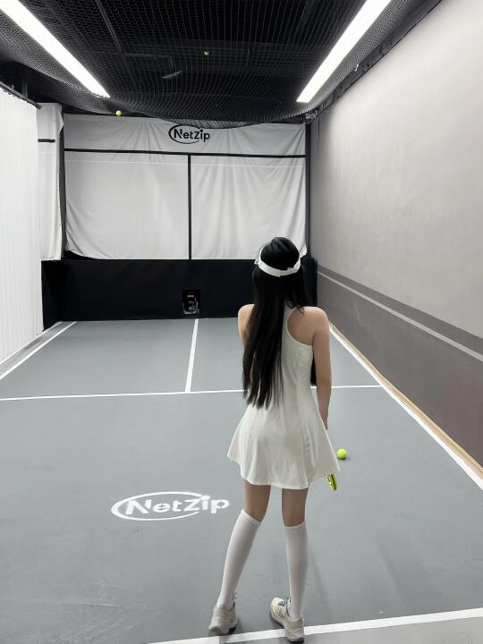 这家发球机训练场地跟我裙子好搭 简约 每个发球机都隔着白色纱帘 私密性也好 适合社恐i人hhhhh 还有vip场地 空间更大 要不是离家有点远 我可能想天天去打 👗:saltum