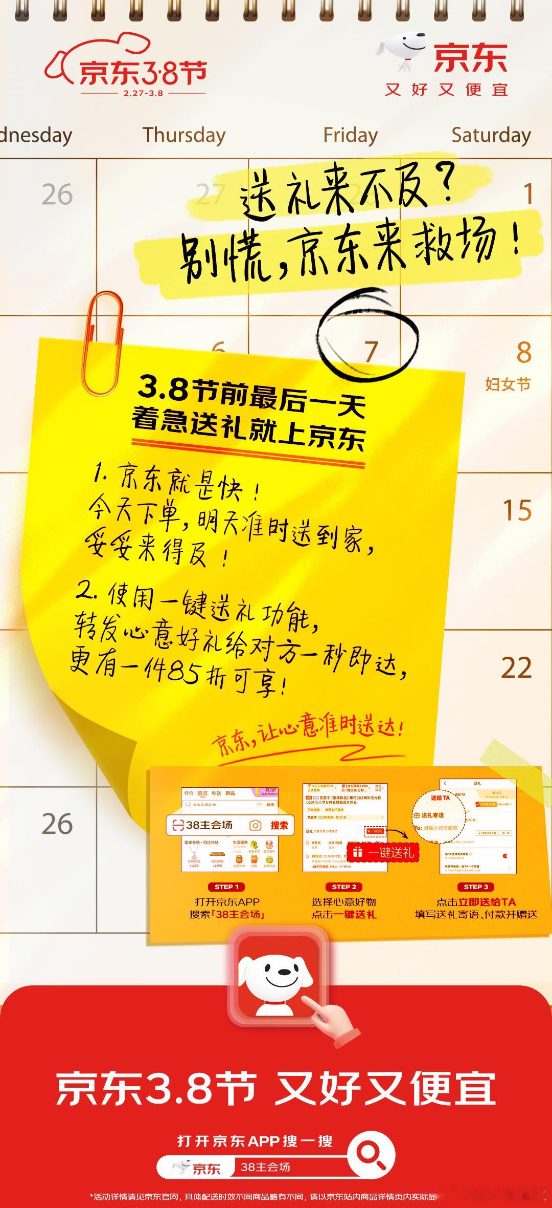 38礼物忘买救场还得看某东 距离3.8节仅剩一天,还在为怎么没准备礼物而发愁吗?京东替你排忧解难。