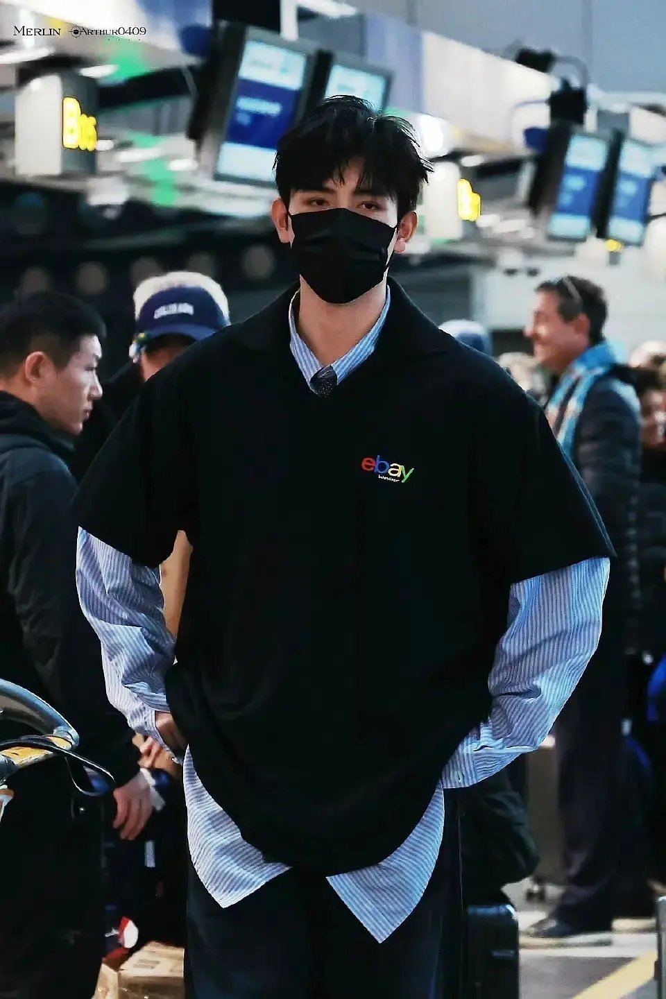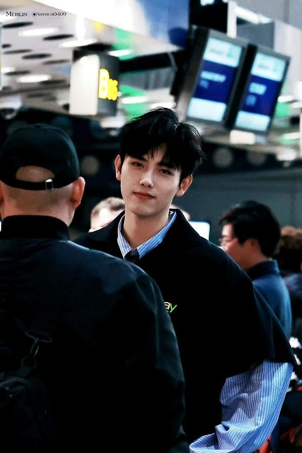 陈飞宇出发巴黎时装周机场路透图。