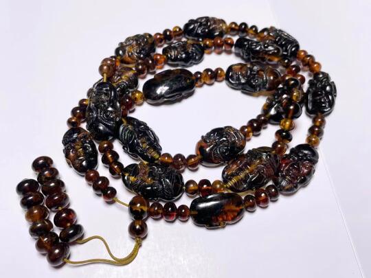 抚顺琥珀约5毫米手链,带着睡觉,效果更好。抚顺琥珀经过抛光后具有比其他琥珀更加明亮的特殊光泽从而越玩越亮。这一特点往往引起收藏者的注意和爱戴 《七律·琥珀》 平生偶得海之遗,拾自深岩万古时。 松膏滴处痕犹湿,蚊蚋潜来户未移。 已判晶光争日月,早涵秋气动须眉。 掌中一掬浑如昨,相对人天两不知。