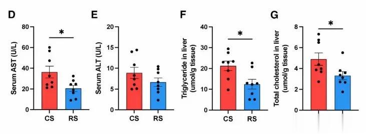 粪菌移植实验进一步验证了这一机制:将RS干预后患者的肠道菌群移植给NAFLD模型小鼠,小鼠的肝内脂肪含量和炎症水平均显著降低。