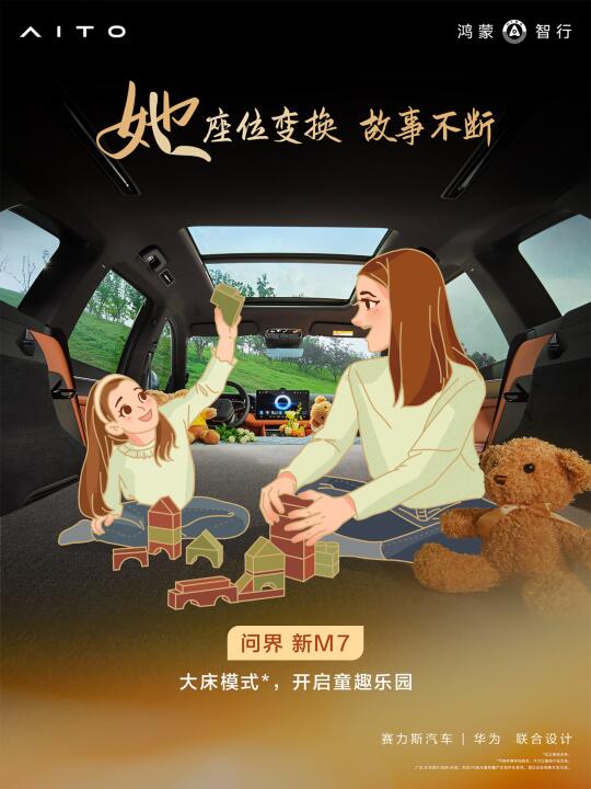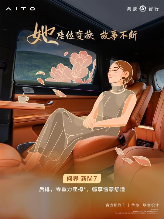 [哇R]家里的她喜欢坐在车内什么位置? [举手R]坐主驾掌握前进的方向, 或是在副驾聆听与陪伴, 亦或是坐后排从容享受, 也可开启大床模式分享童趣[氛围感R] [鼓掌R]鸿蒙智行国民SUV 问界新M7, 每一程有她,每一位为她[红色心形R] 鸿蒙智行 家里的她喜欢坐在车内什么位置 妇女节