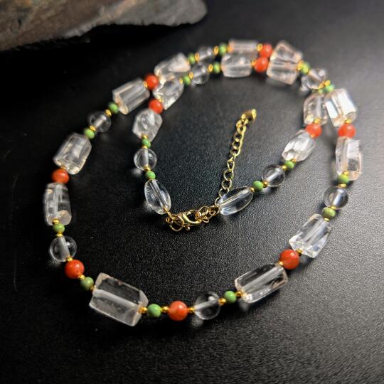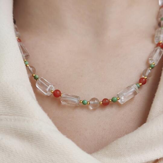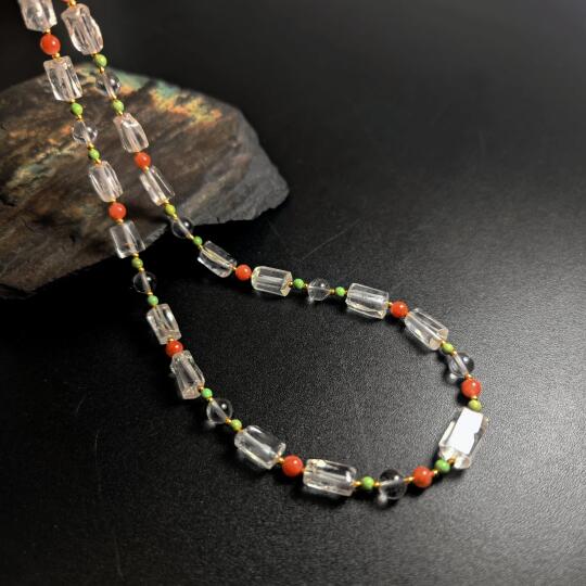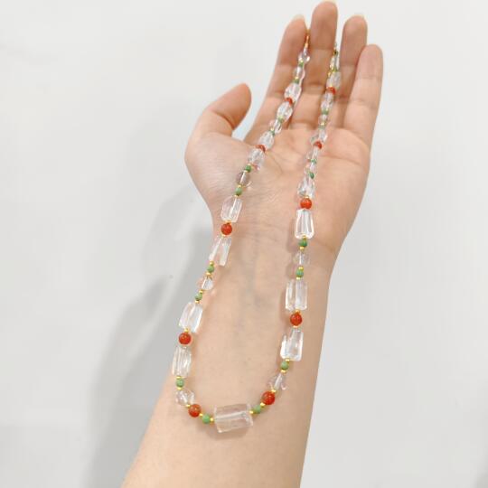 难怪那天108的白水晶一出来近百条就没了。 结果你们都默默的下单,没人提醒我们,涨价了这么多。 昨天到广州了,一逛荔湾广场才知道,水晶类的春节后全部变了天,疯狂涨价。 水晶人终于在八年之后,又等来了一次,猛涨。 这个是之前做的仿战国时期的白水晶造型,所以还把岁月的磕碰也做旧上去了。 我们没有涨价啊,因为是之前的库存。还搭配了天然原矿绿松石和南红玛瑙。 卖完无补