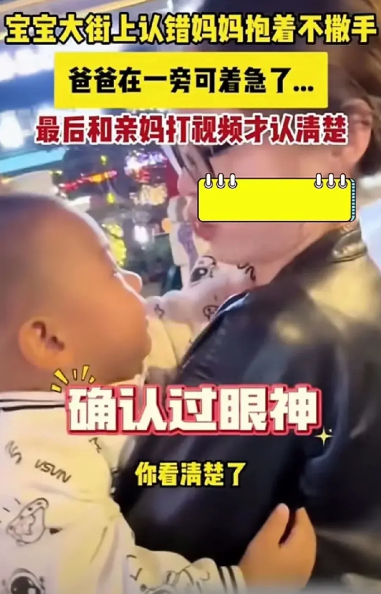 孩子在大街上竟认错了人,抱着人家姑娘就当亲妈,死不撒手,也不顾爸爸是否同意,执意要把这姑娘领回家当妈妈。 这下爸爸着急了,急忙给孩子的亲妈打电话。好在有视频通话,最终,孩子才迷迷糊糊地松了手。 这相似度得有多高啊?真该建议她们去做个亲子鉴定,会不会是失散的亲人呢? 等孩子将来长大了,再让他看到这场景,不知他会不会窘得受不了呢?