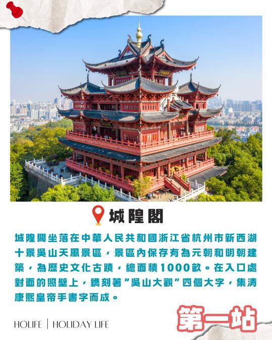 城隍阁坐落在中华人民共和国浙江省杭州市新西湖十景吴山天风景区,景区内保存有为元朝和明朝建筑,为历史文化古迹