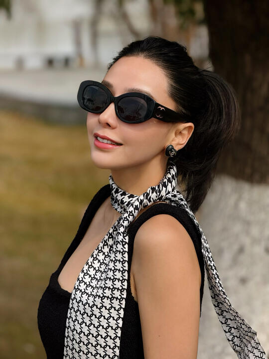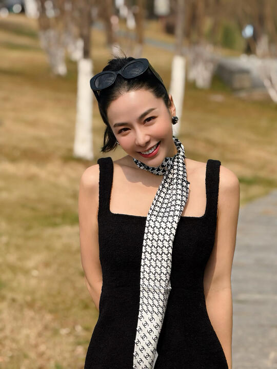 感染力笑容 期待夏天的到来 香奈儿丝巾