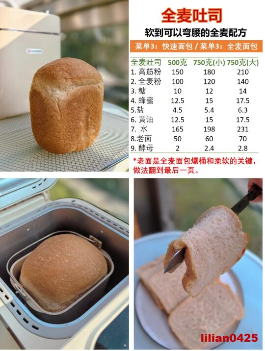 [二R]全麦吐司 改自吴克己大师配方,可以弯腰的全麦面包