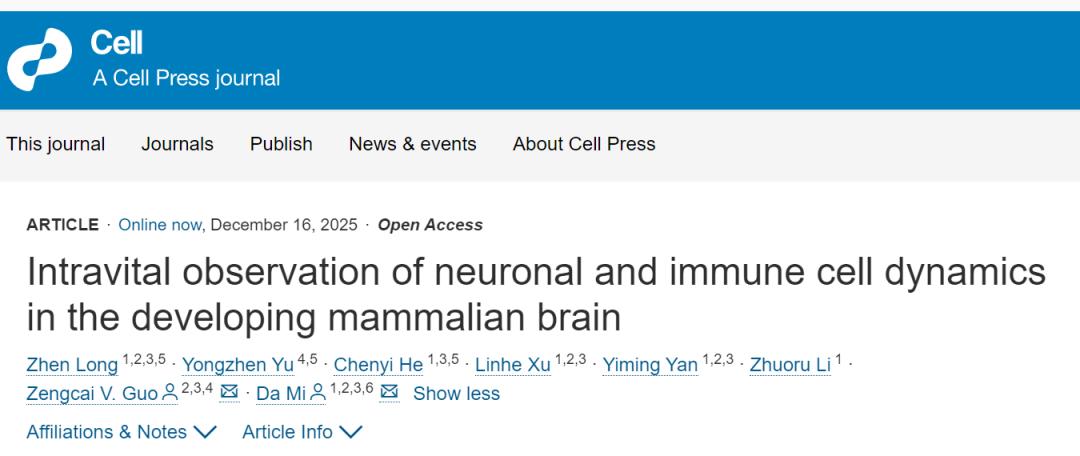 12月16日,cell在线发表了一篇炸裂的成果,这项由清华大学米达和郭增才领导的团队,干成了一件学界心心念念多年的事:给活着的、正在发育的小鼠胚胎大脑,做了一个高清的、长时段、多角度的“体内实况直播”。这项研究不仅革新了发育生物学的研究工具,更为理解大脑如何从一片混沌中构建出精密网络,以及相关疾病的起源,打开了一扇前所未有的观察窗。