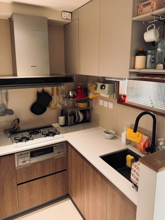 厨房虽小,但因为动线合理用起来完全不鸡肋