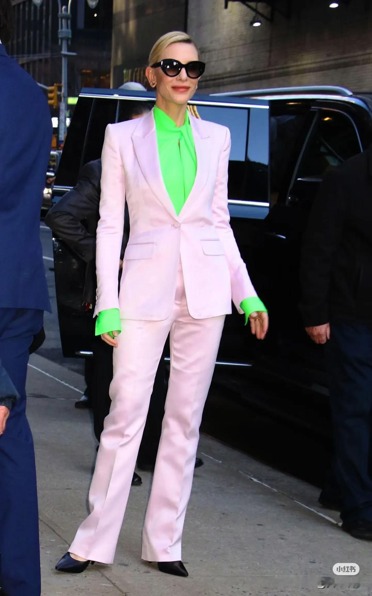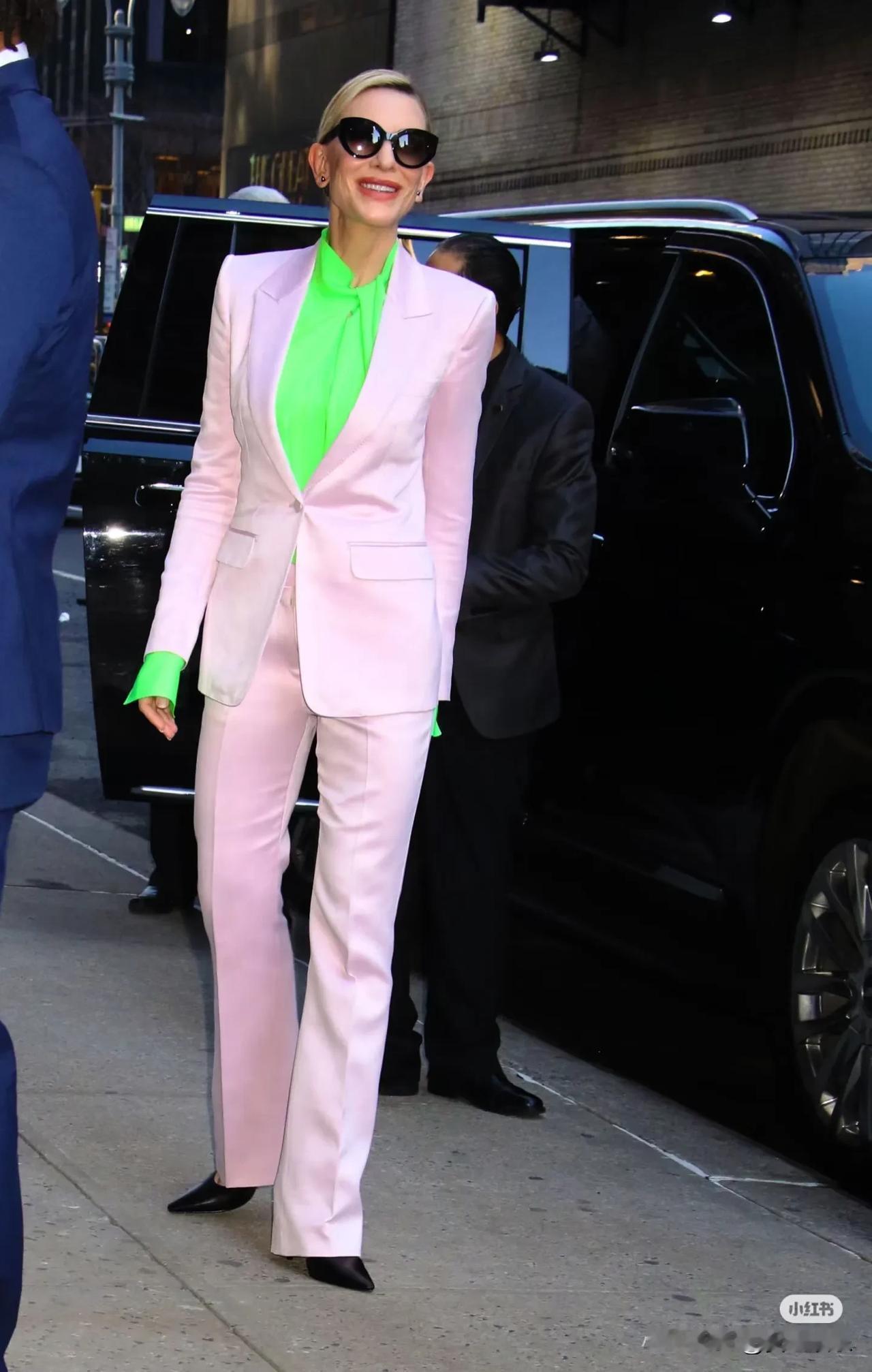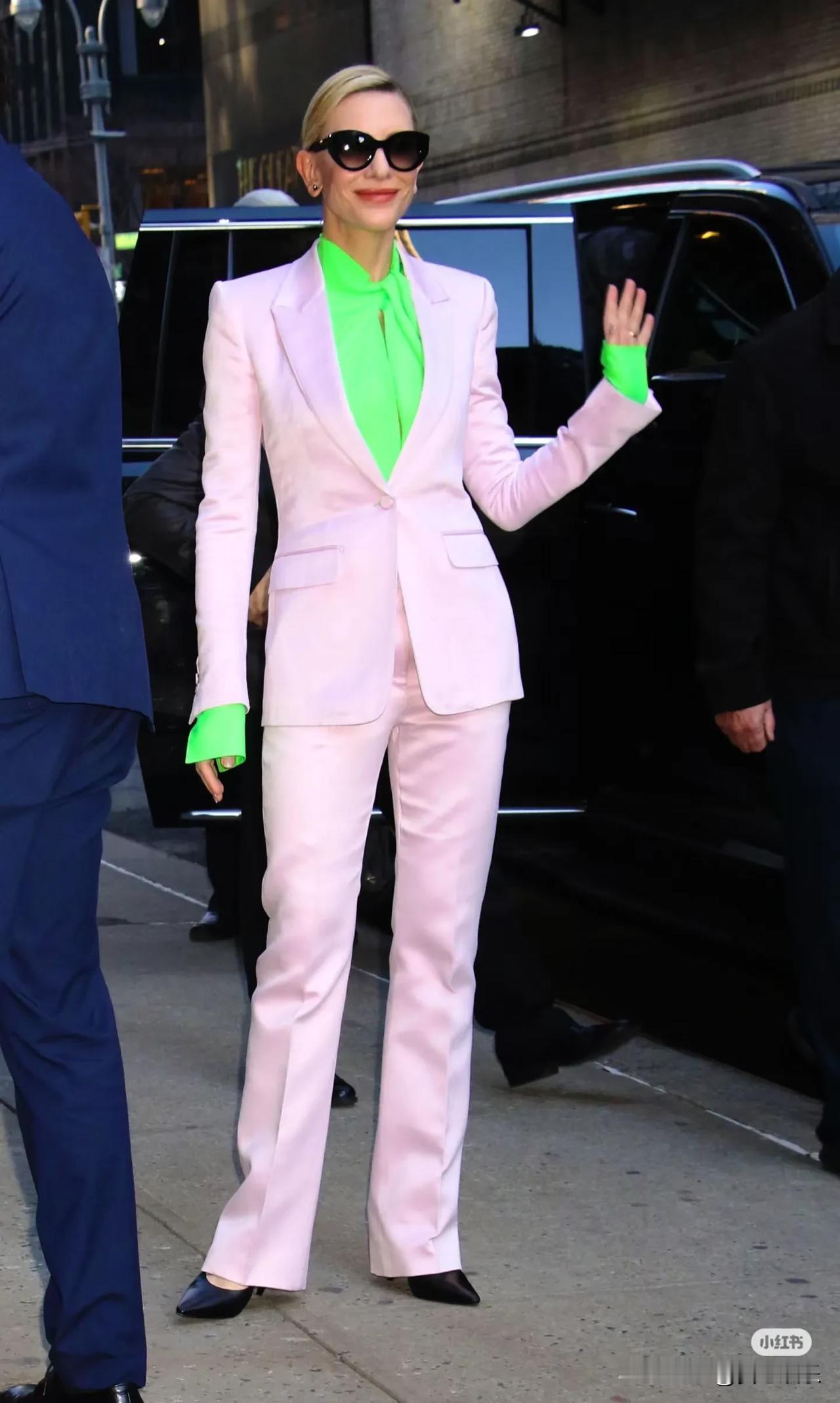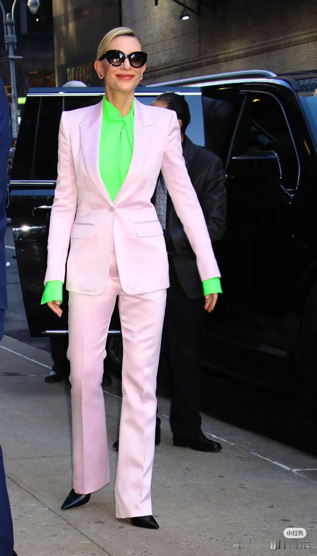 今年火起来的醒目配色大魔王也穿上了 凯特·布兰切特现身纽约录制节目,好喜欢这个神奇的配色