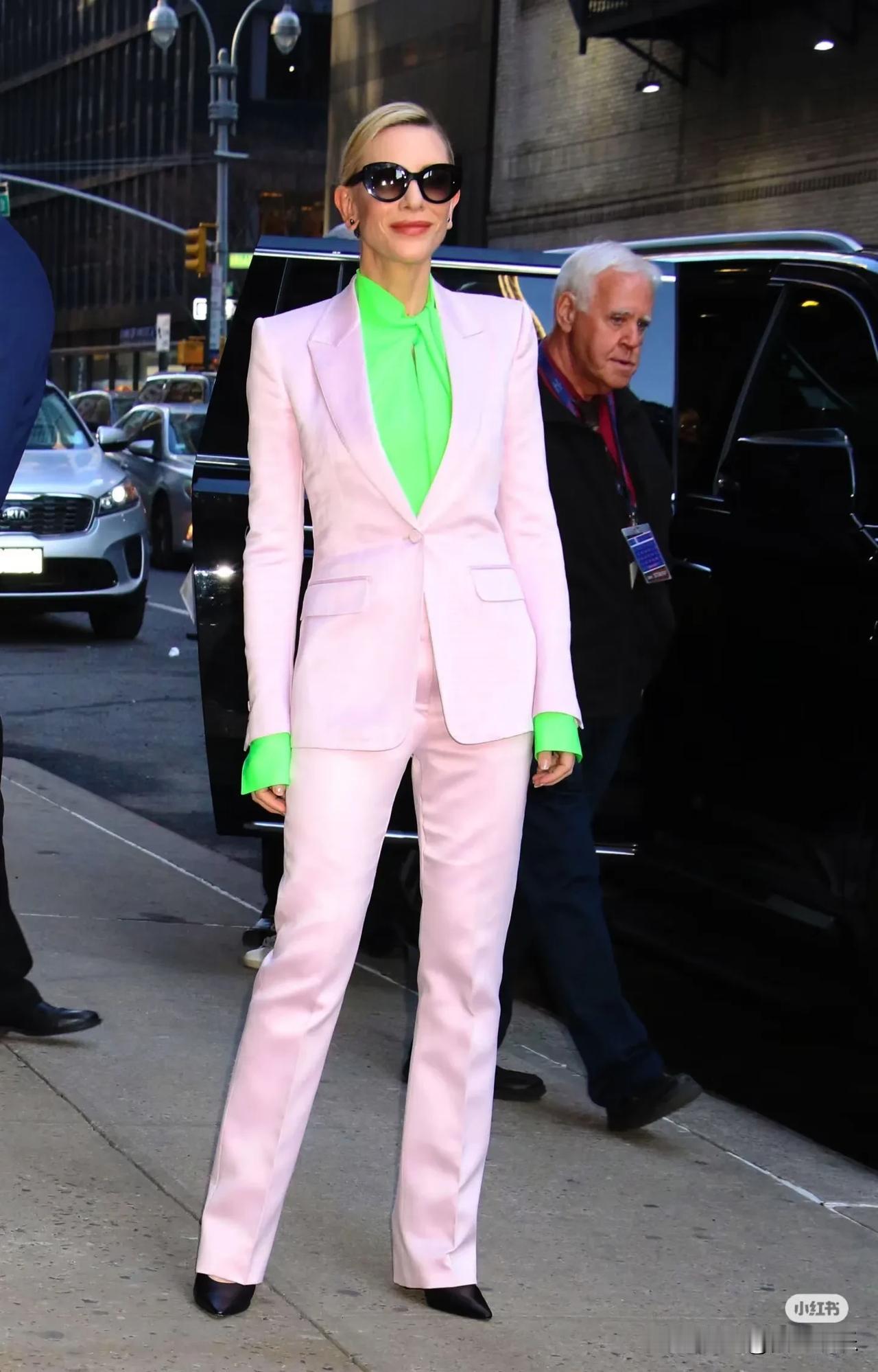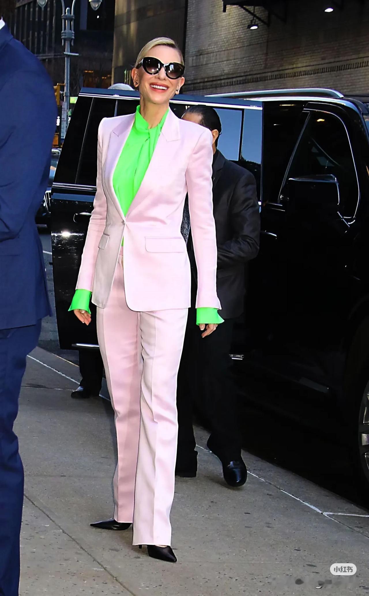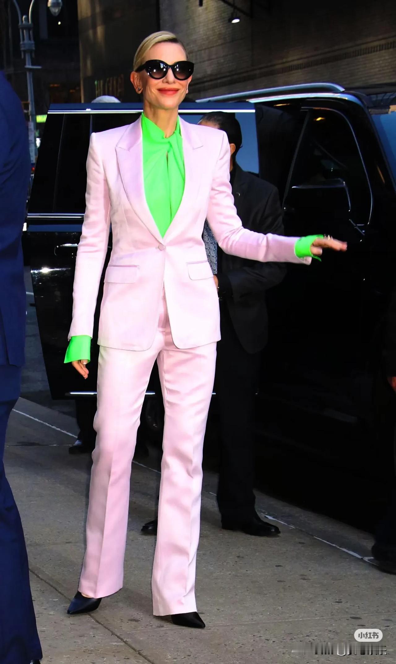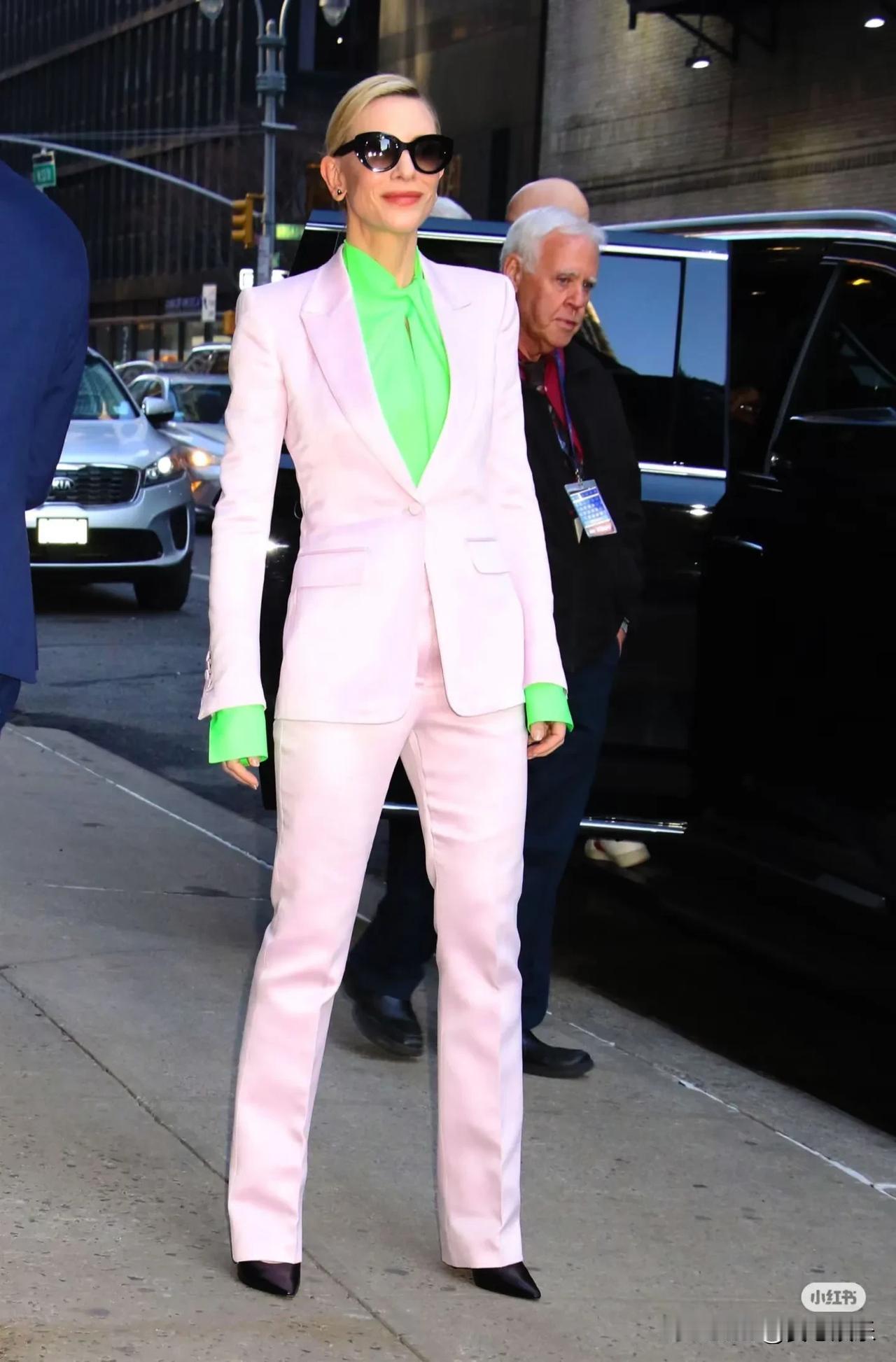 今年火起来的醒目配色大魔王也穿上了 凯特·布兰切特现身纽约录制节目,好喜欢这个神奇的配色