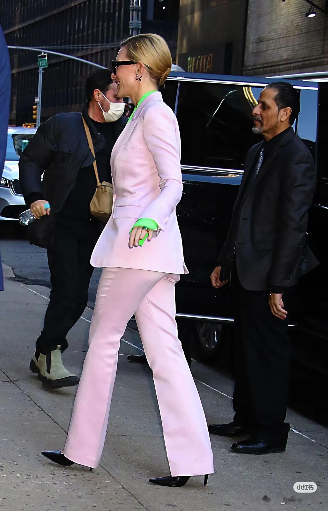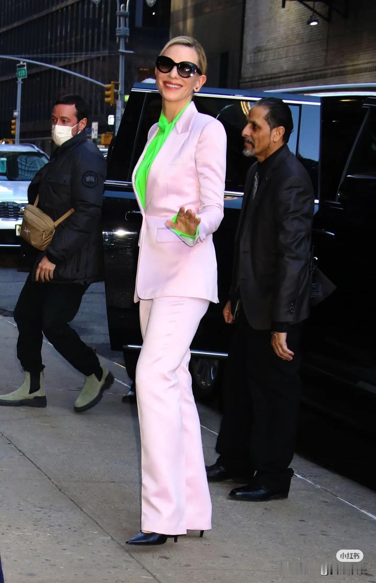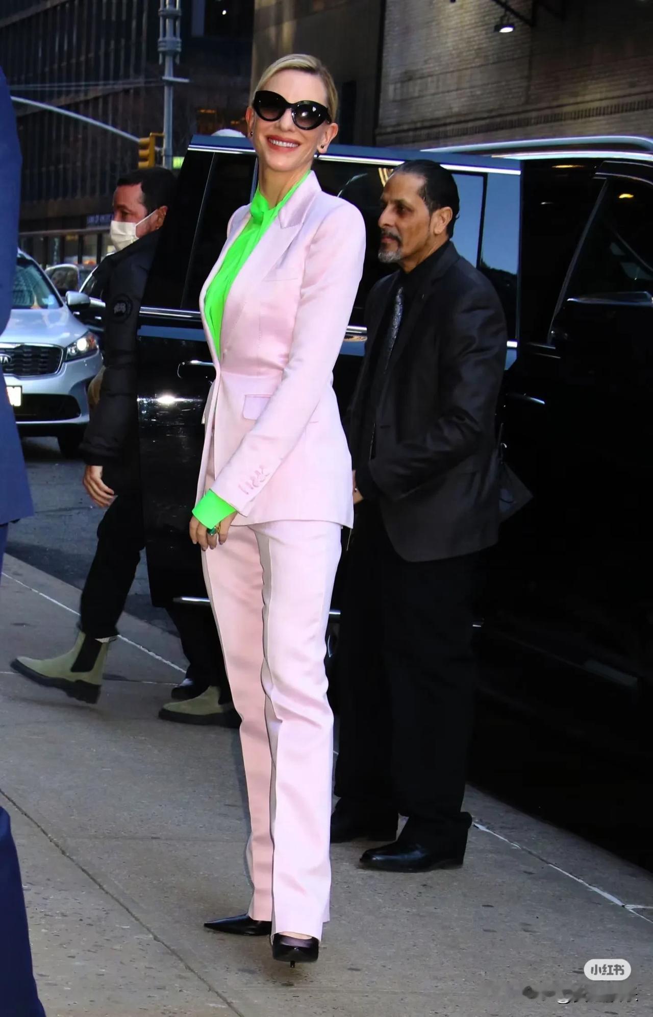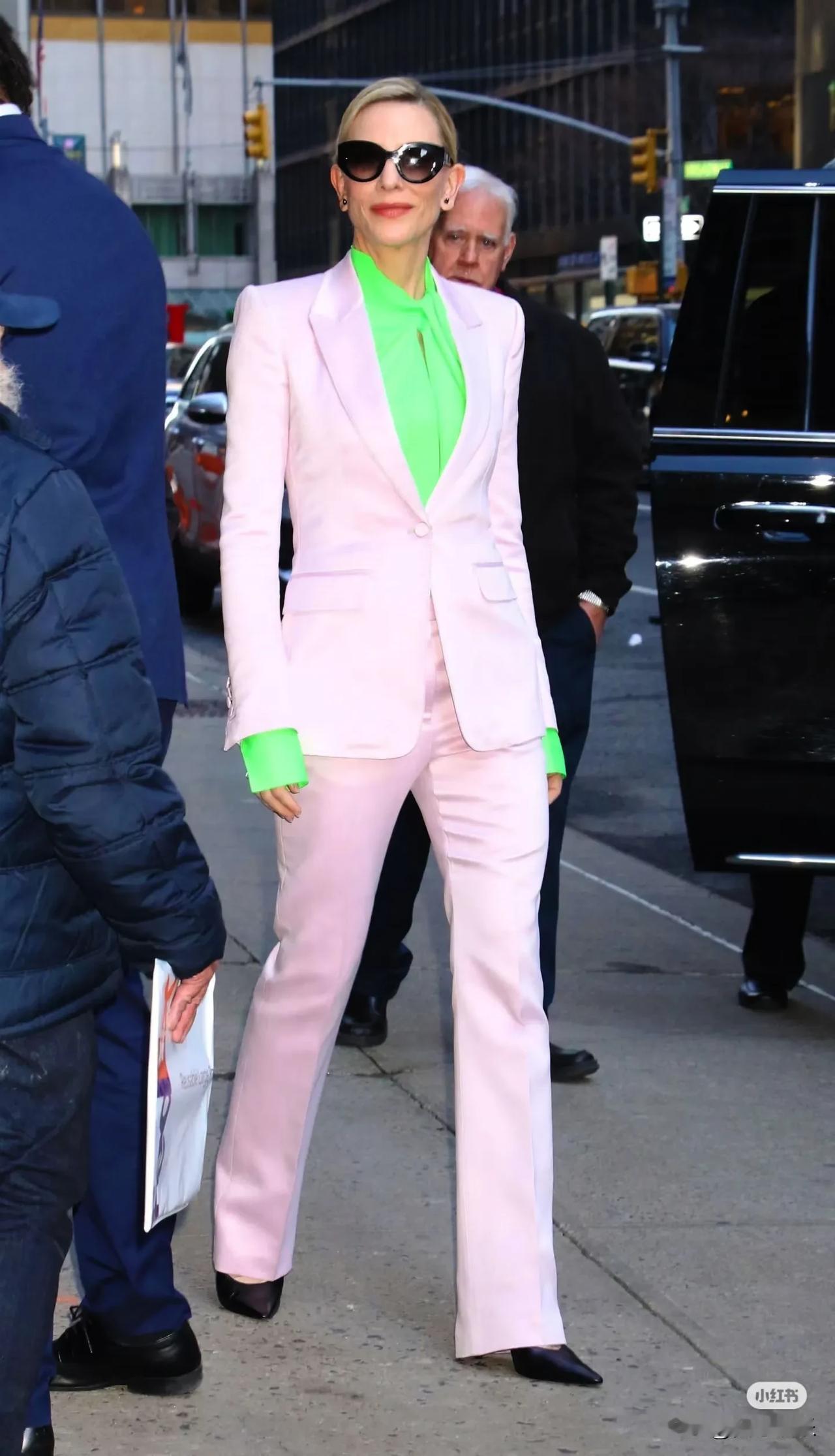 今年火起来的醒目配色大魔王也穿上了 凯特·布兰切特现身纽约录制节目,好喜欢这个神奇的配色