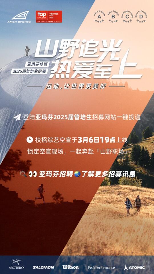 📢亚玛芬2025届管培生招聘已正式启动!如果你热爱户外运动,追求健康生活方式,敢于突破自我,欢迎加入我们!