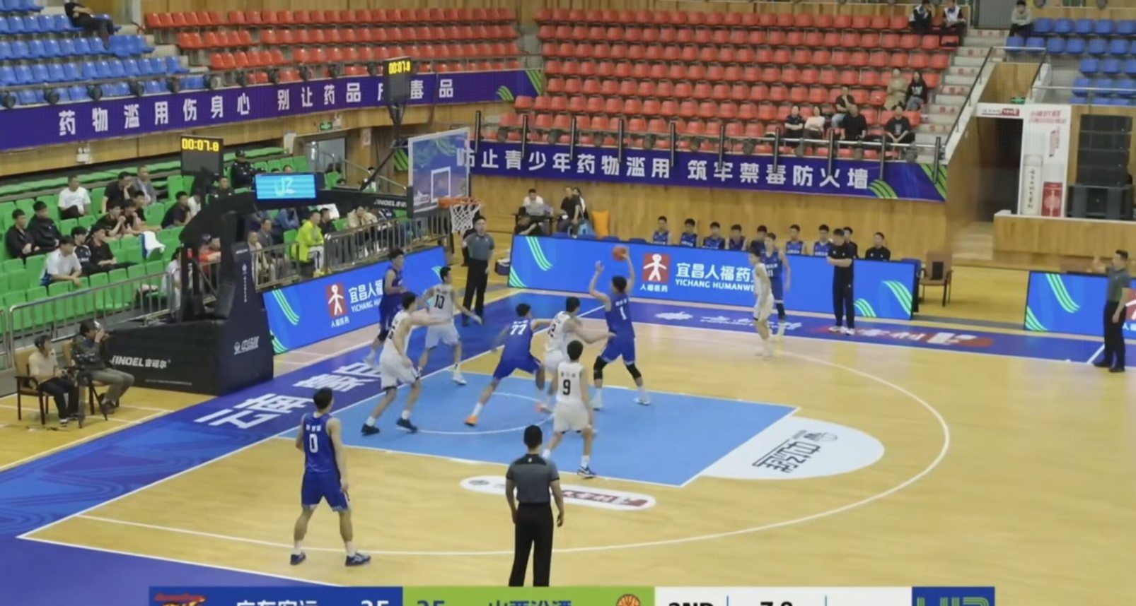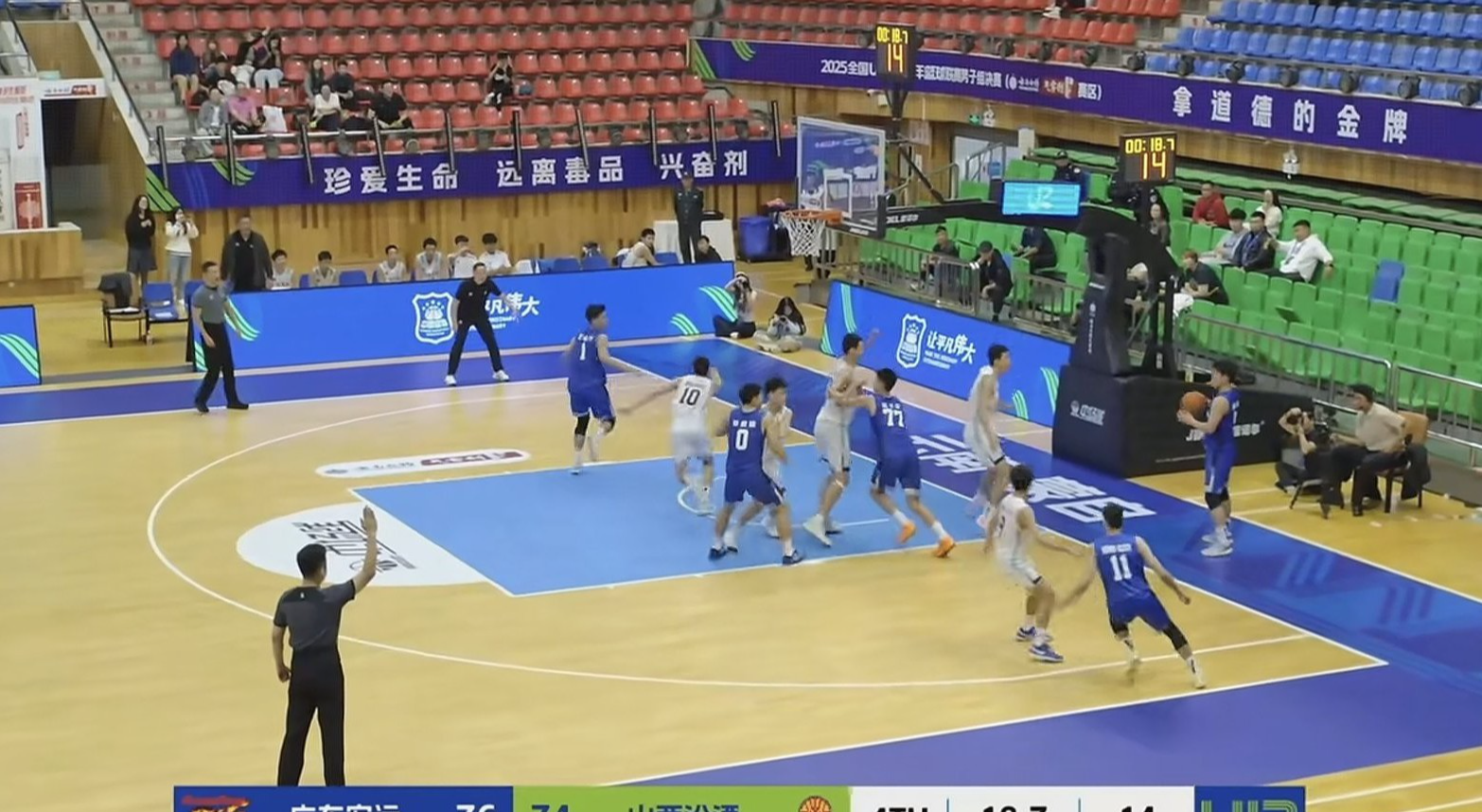 最后18.7秒。山西拥有球权,主教练叫停。冯子轩篮下拼到篮板一打五,打进2分。